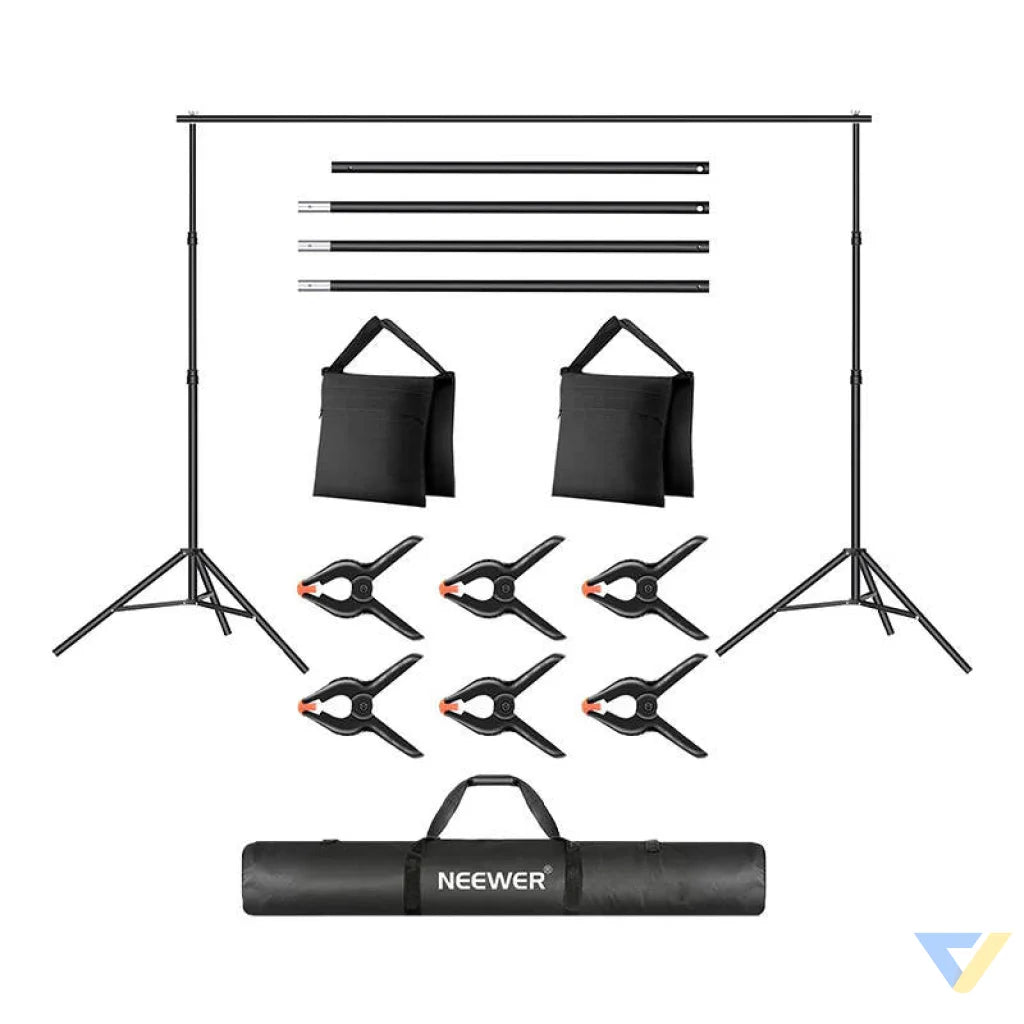 The Neewer Photo Background Stand Kit is a versatile and sturdy kit designed for professional photography in the studio and at events such as weddings and parties. The kit offers stable support for backgrounds, allowing you to create a variety of settings and professional photos. It includes adjustable stands, crossbars and accessories for convenience and ease of use.