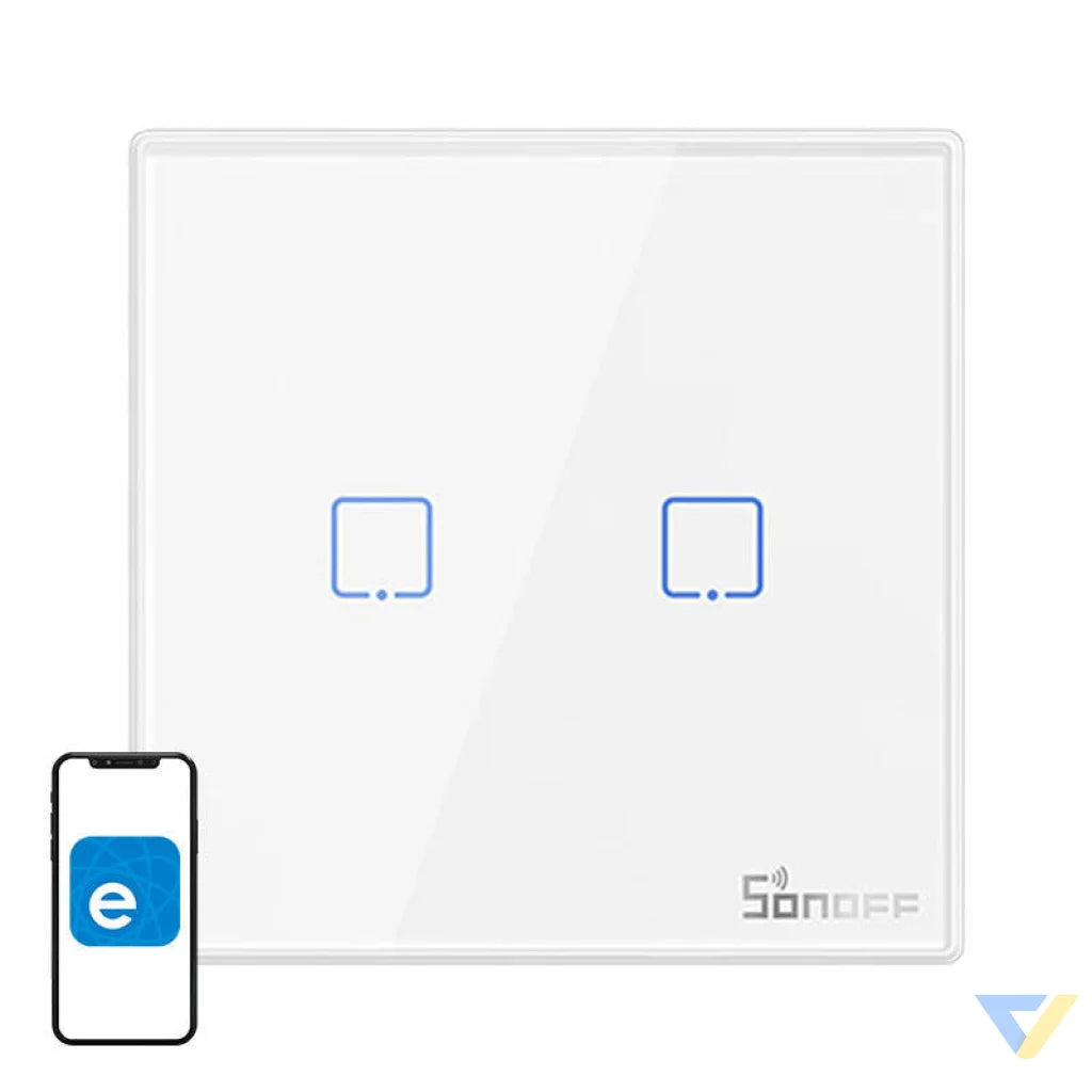 Умный беспроводной настенный выключатель Sonoff T2EU2C-RF 433MHz (2-канальный)