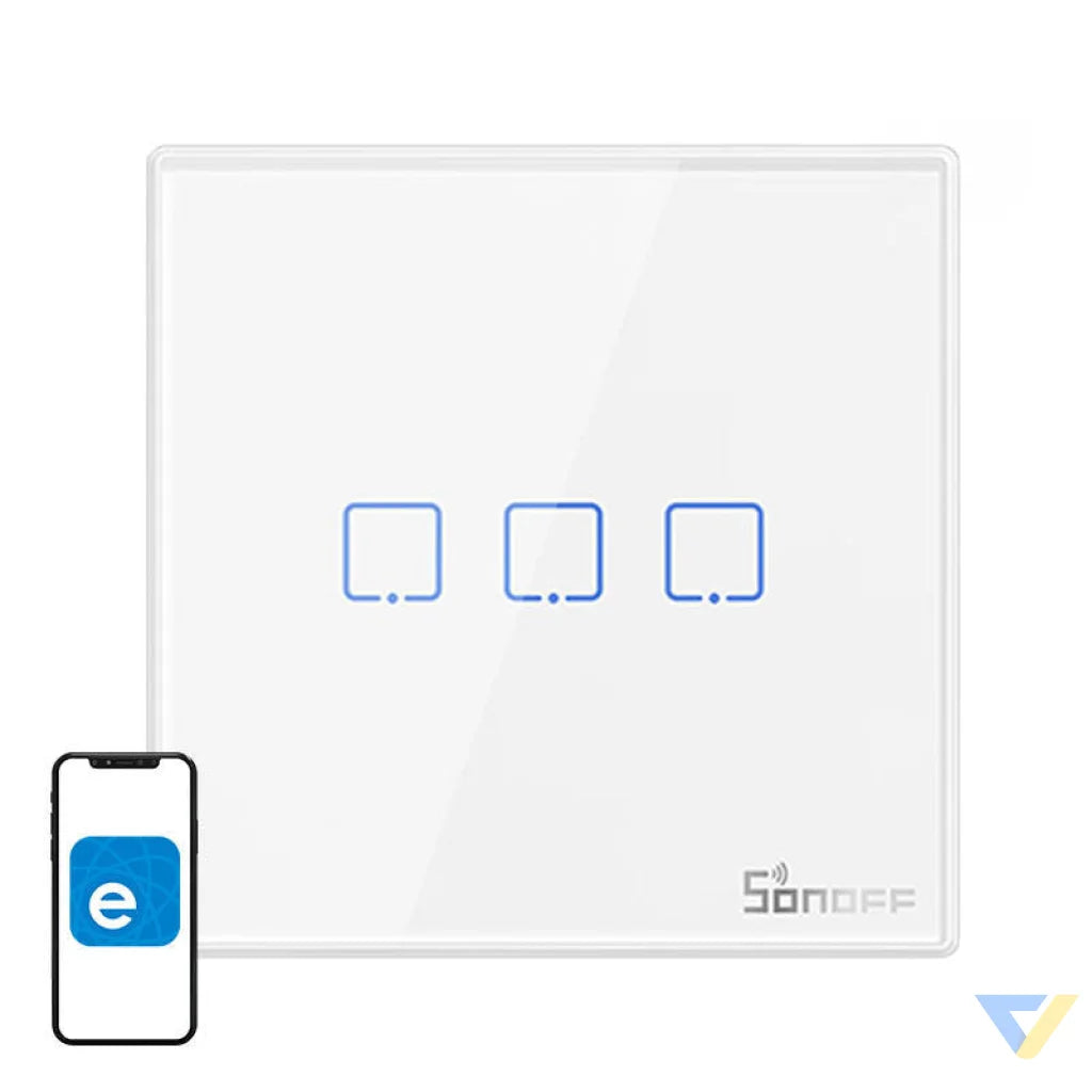 Умный беспроводной настенный выключатель Sonoff T2EU3C-RF 433MHz (3-канальный)