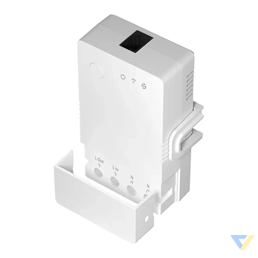 Умное реле Sonoff THR320 выделяется продуманным дизайном. В устройстве есть большая кнопка для включения/выключения. В комплекте поставляется монтажная рейка, которая позволяет легко закрепить устройство в нужном месте, а передний щиток обеспечивает безопасность. Кроме того, улучшенная система проводки защищает от коротких замыканий.