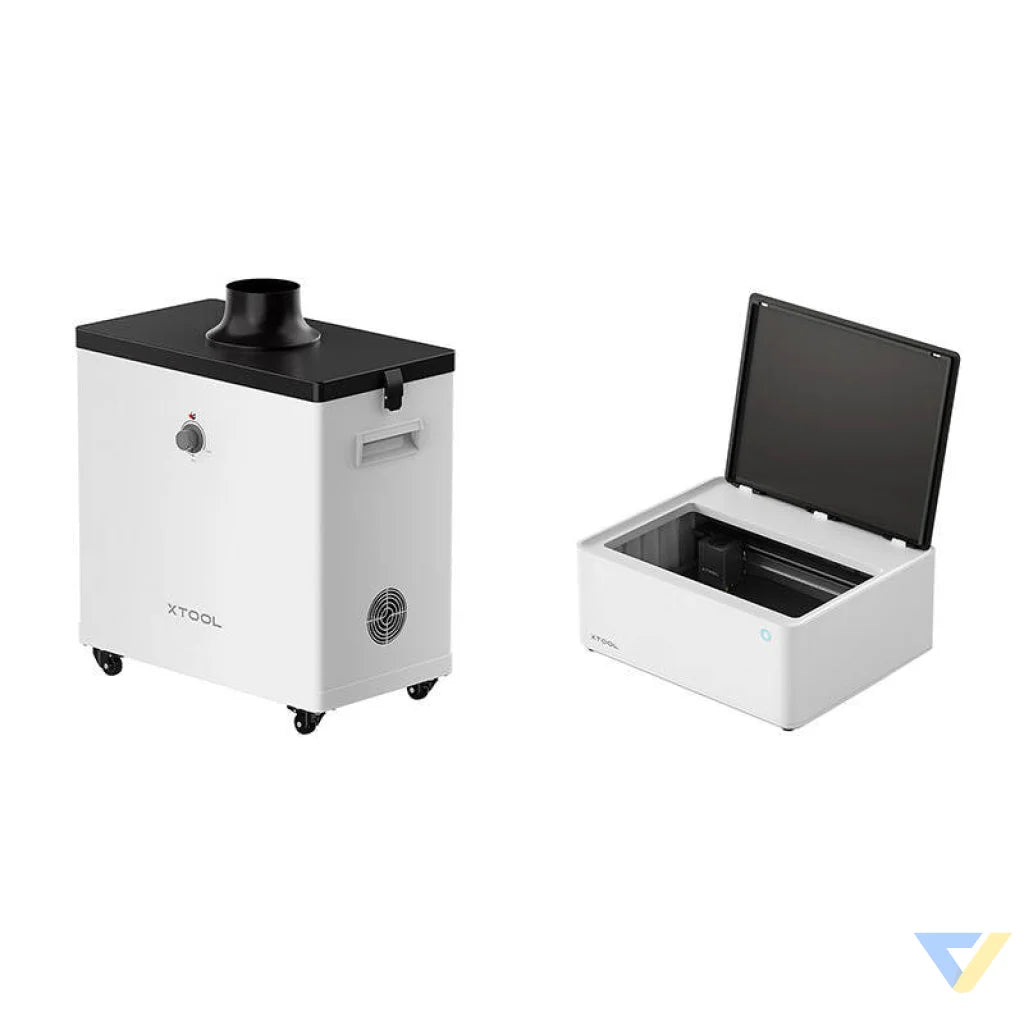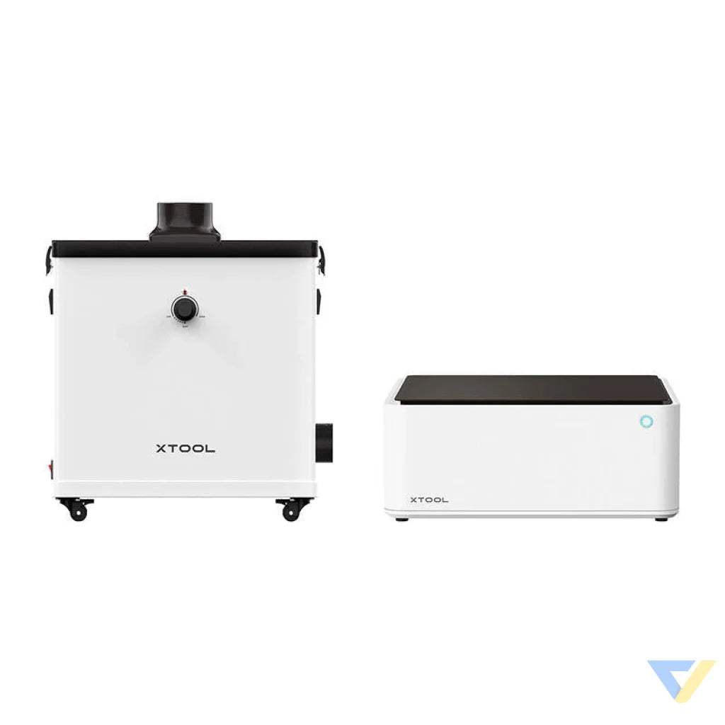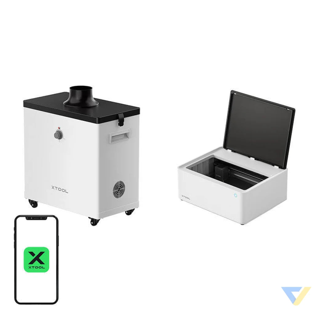 Rounding out the kit is the xTool Smoke Purifier, which removes 99.97% of harmful particles and odors with its advanced filtration system. The three-layer filter, including a HEPA filter and activated carbon, ensures optimal working conditions, eliminating air pollutants during cutting and engraving. Its practical casters allow the purifier to be easily moved to where it is currently needed.
