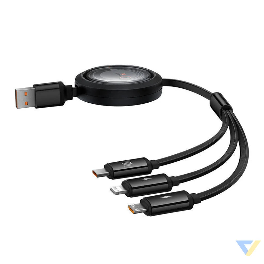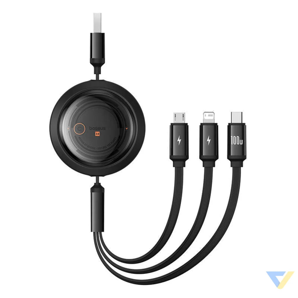 3-in-1 Baseus Free2Draw USB to M+L+C 100W cable, 1.1m (black).