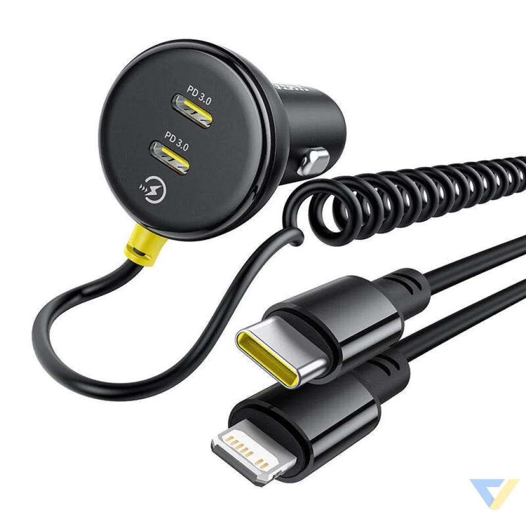 Baseus 60W USB-C car charger + Lightning cable (Black).