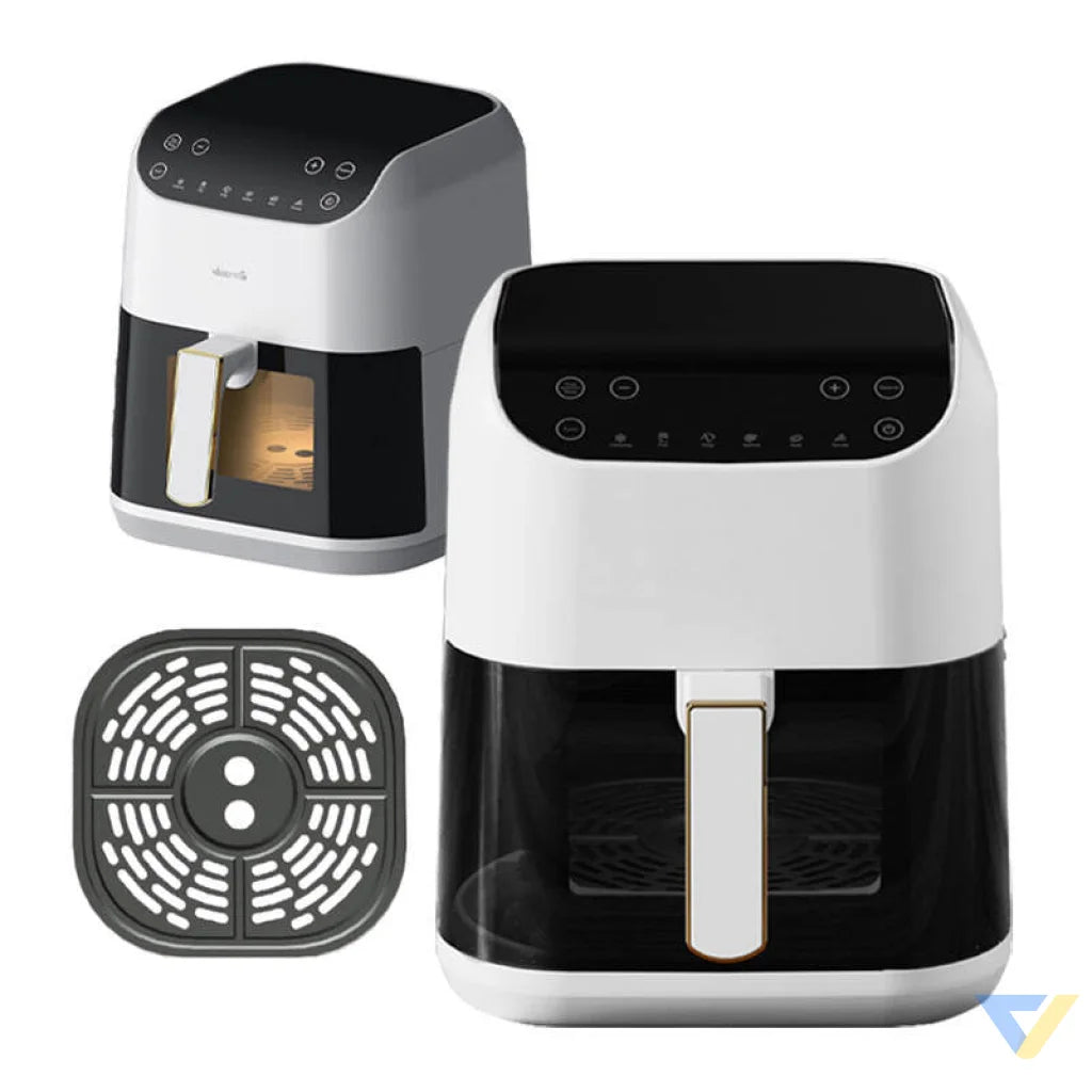 The Deerma DEM-KZ130W is a 1300W oil-free fryer that uses circulating hot air in a closed circuit to prepare a delicious meal for you. To ensure your safety, the device is equipped with dynamic NTC temperature control and a handle to protect against burns, making it even more enjoyable to use. In addition, the fryer has buttons for changing the temperature, setting the delay time for cooking, selecting the menu, and turning it on and off.