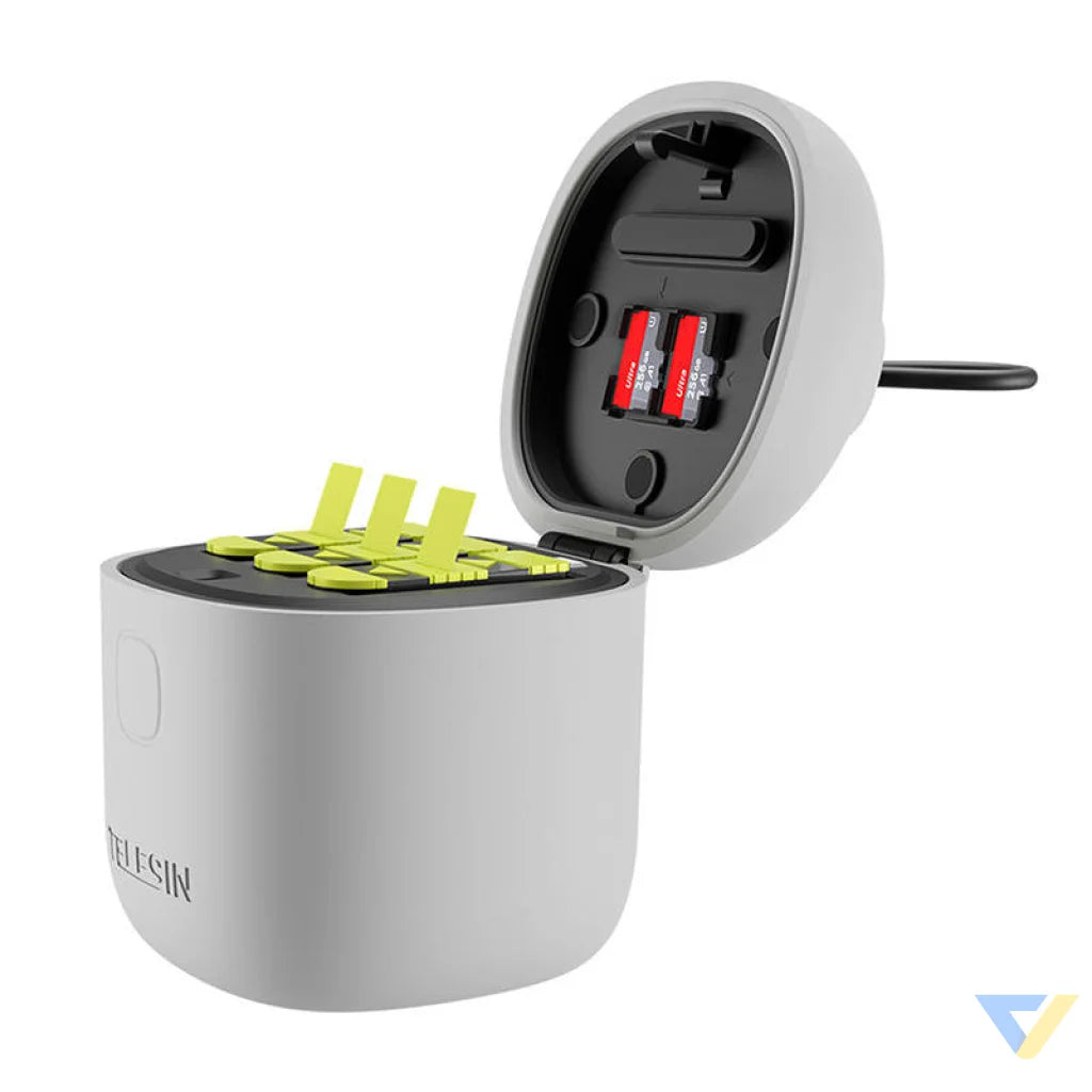 Нужен надежный кардридер для TF-карт? Зарядное устройство бренда Telesin вас тоже не подведет. Оно поддерживает ультрабыстрый протокол передачи файлов через USB. Для копирования 1 ГБ данных требуется всего минута! Таким образом, это многофункциональное устройство окажется незаменимым во множестве ситуаций.