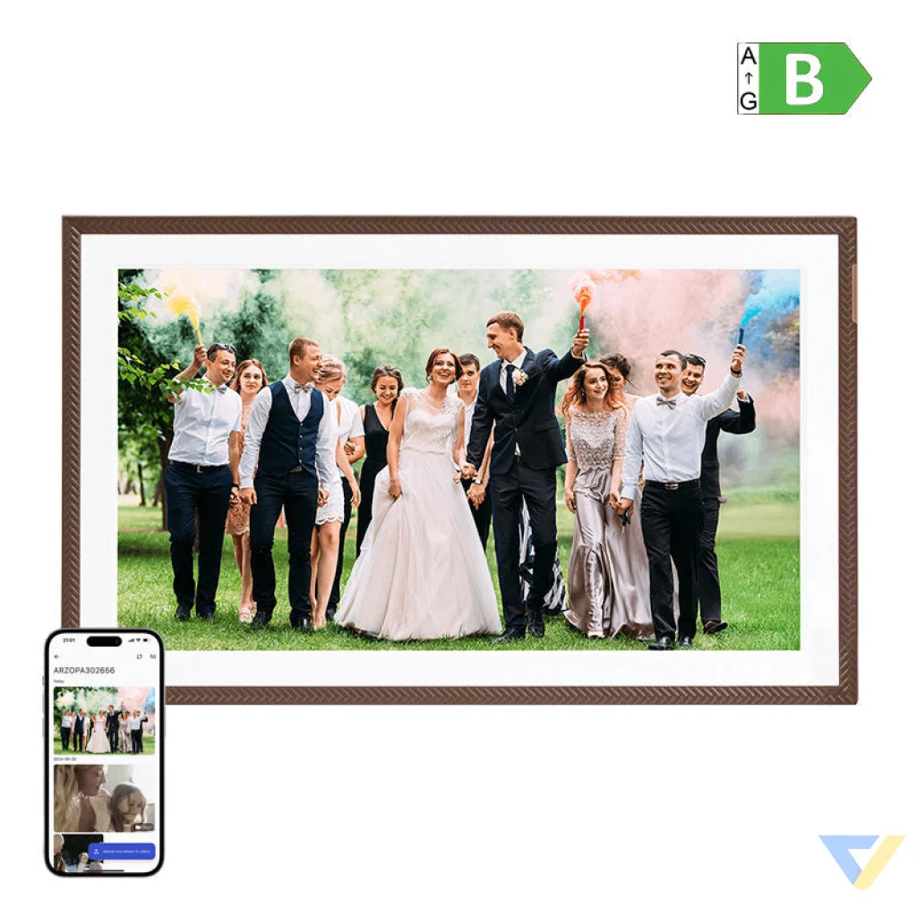 The Arzopa D156 digital photo frame with touch screen is a modern way to display your memories. It faithfully captures the emotions locked in your photos on its large 15.6" Full HD screen. Equipped with Wi-Fi, 32GB of built-in memory and a microSD card reader, it allows you to quickly transfer media directly from your phone - from anywhere in the world. It supports photos, video and music, as well as automatic rotation, allowing you to display photos in any orientation. Thanks to its minimalist casing, it is ideal as a home decoration or a gift for any occasion.