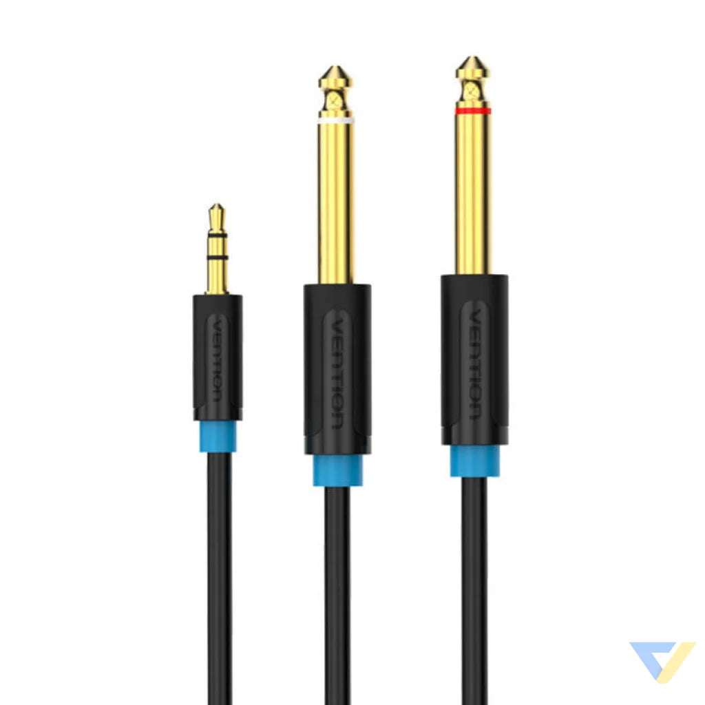 Vention BACBJ 5m TRS 3.5mm male to 2x 6.35mm male audio cable (black). Featuring a 3.5mm TRS male connector to...