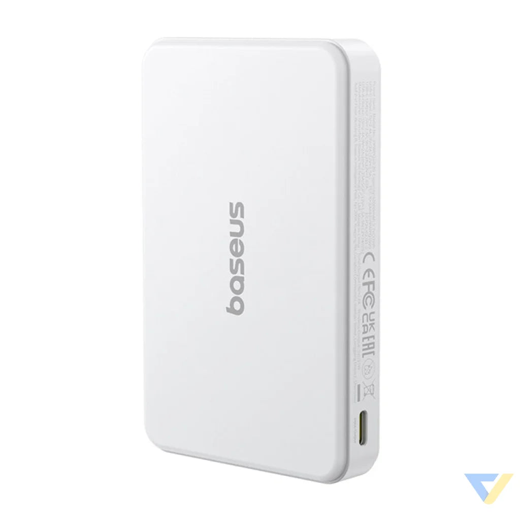 With its compact size and lightweight design, the Baseus Airpow2 Qi2 fits perfectly in your pocket or bag. The stylish white finish gives it a modern look that blends well with other accessories. It also comes with a USB-C cable, making it ready to use right out of the box.