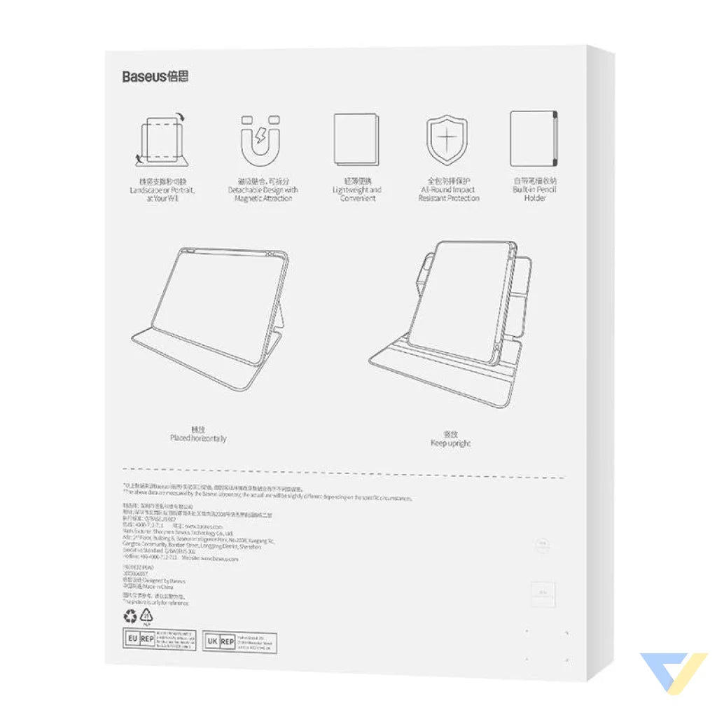 The Baseus magnetic case was created with comfort in mind, which is why it is equipped with a pencil holder. From now on, you will never lose them again! In addition, you can use it comfortably and position it vertically or horizontally. What's more, in the horizontal position you can position your Ipad at two heights - one convenient for drawing and the other for watching videos.