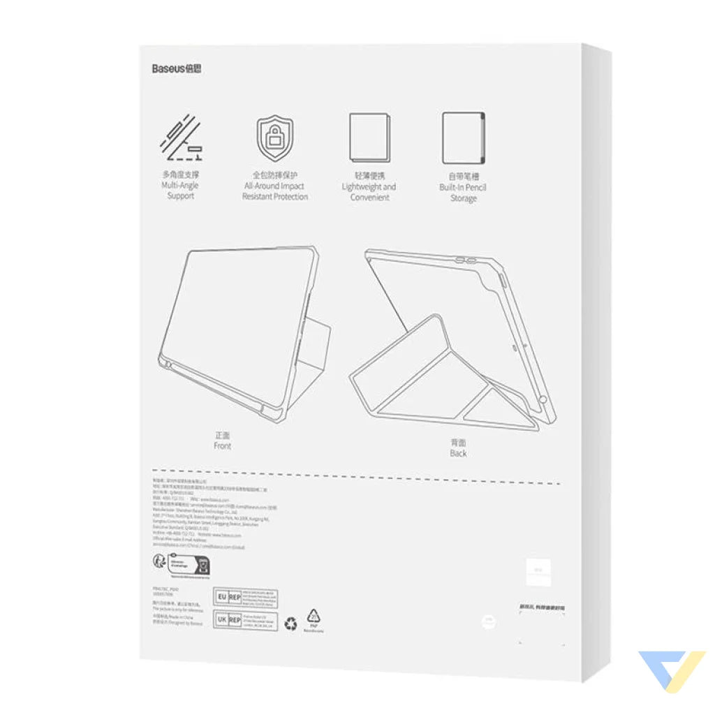 The Baseus magnetic case was created with comfort in mind, which is why it is equipped with a stylus holder (Baseus Stylus Pen and Apple Pencil I/II. From today you will never lose them again! In addition, you can comfortably use it and position it vertically or horizontally. What's more, in the horizontal position you can set your ipad at two heights - one convenient for drawing and the other for watching videos.