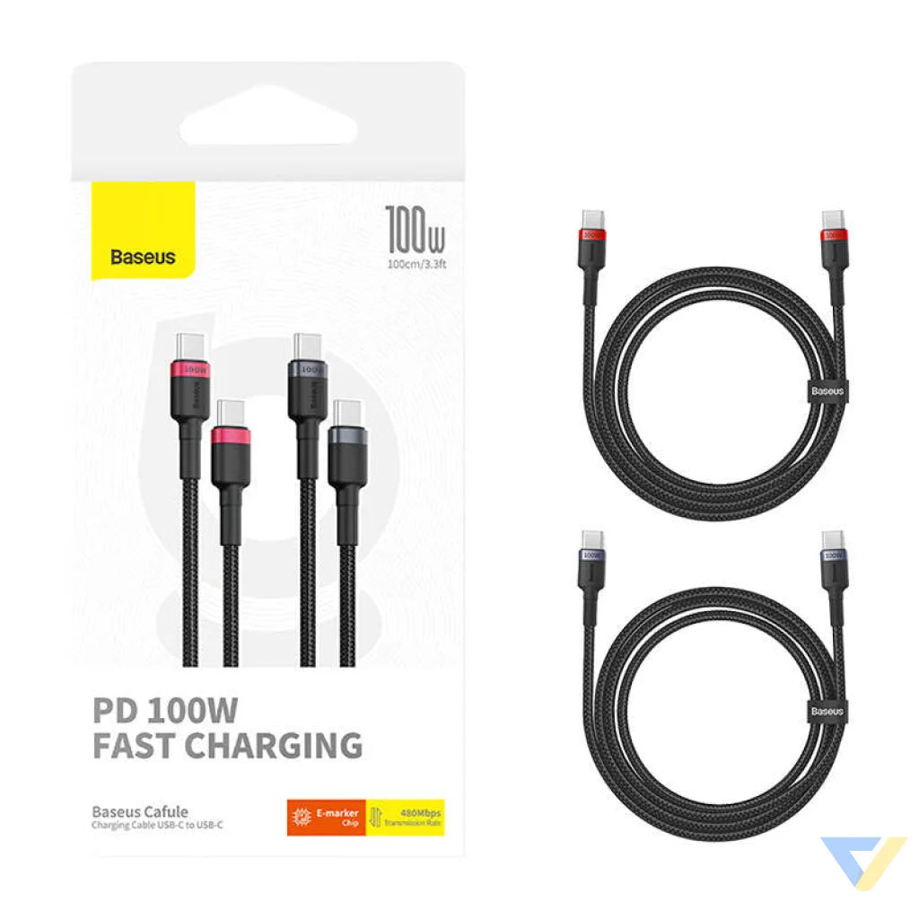 The Baseus Cafule set of two USB-C to USB-C cables is an ideal choice for those who care about fast charging and efficient data transfer. Its included cables offer PD power of 100 watts and transfer speeds of up to 480 Mbps - sure to meet your expectations.