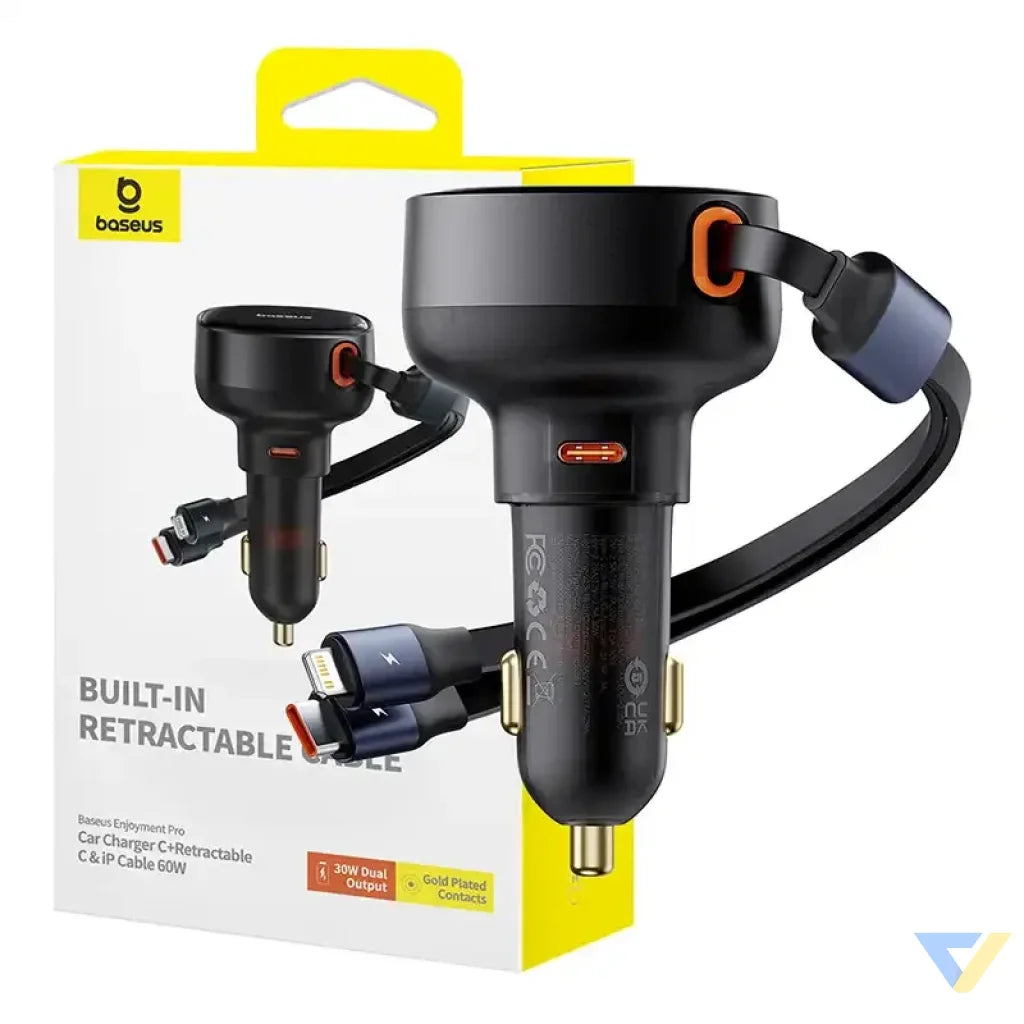 Do you often travel by car? The Baseus Enjoment car charger will definitely come in handy for you! It has a built-in cable with a USB-C and Lightning connector, as well as a USB-C port, so you can charge up to 3 devices simultaneously. Its maximum charging power reaches 60 watts and supports multiple fast charging protocols, so it won't take long to renew the energy of your selected devices. With a universal voltage of 12-24V, it is compatible with most vehicles.