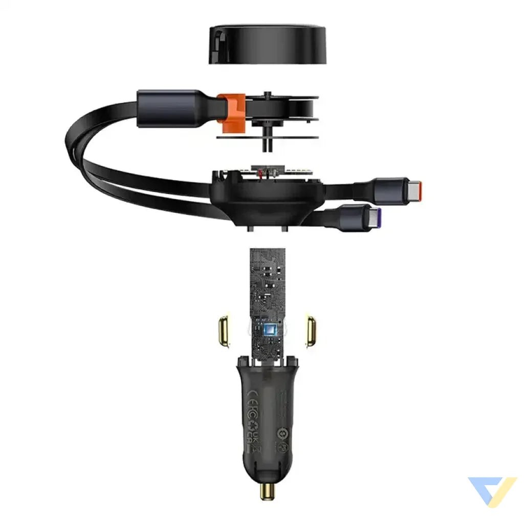 Baseus Enjoyment car charger with USB-C cables, 33W (black).