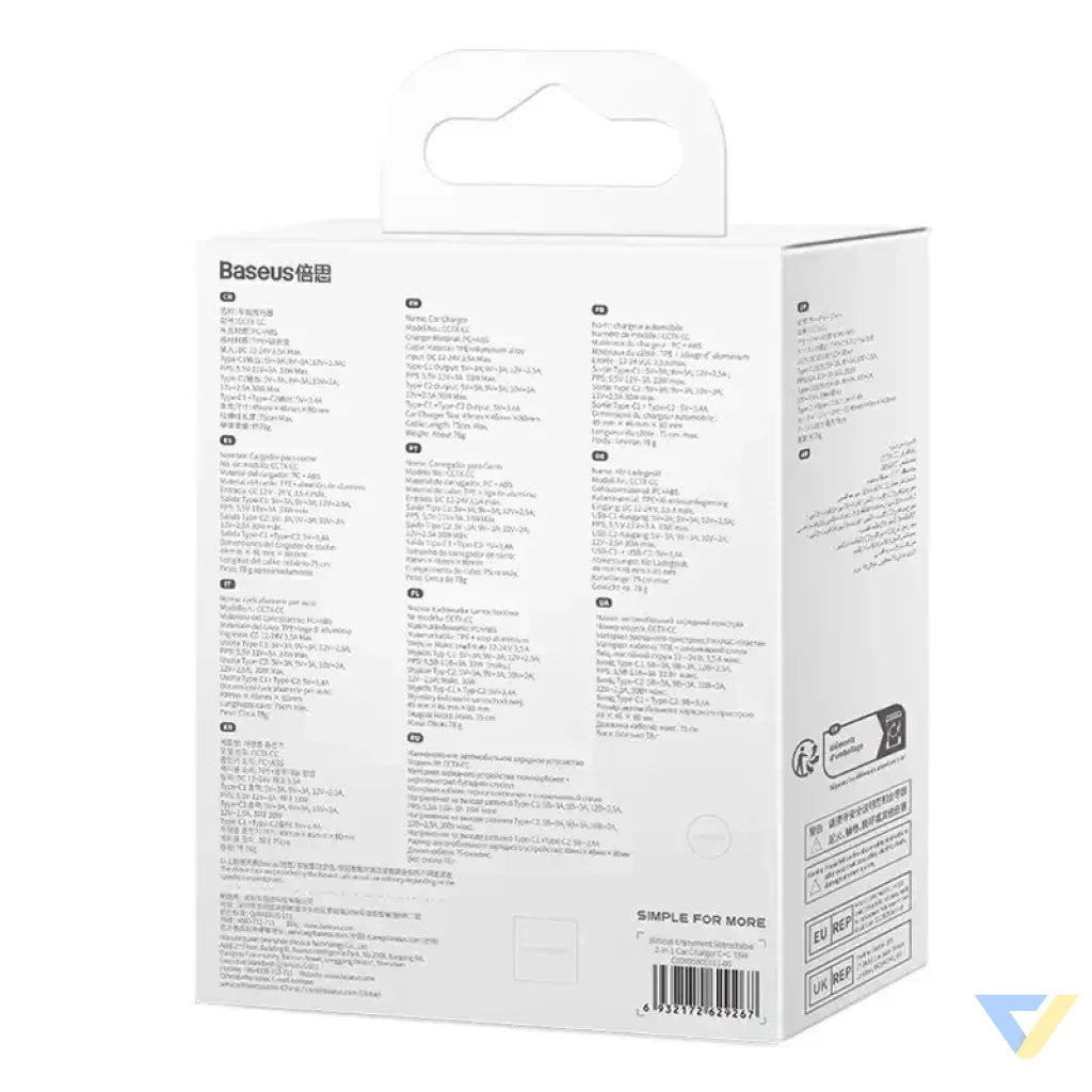 Baseus Enjoyment has 2 USB outputs - USB-C1 (33W) and USB-C2 (30W). This allows you to replenish your smartphones, tablets and other devices without hassle. The charger supports QC, SCP, FCP or Apple 20W PD fast charging protocols. Bet on a combination of performance and convenience!