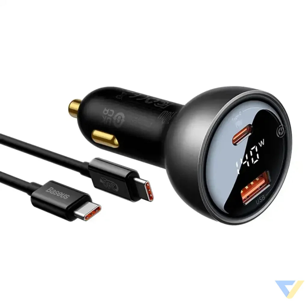 Your phone or laptop discharged while traveling? Now it's not a problem anymore! The Baseus car charger is equipped with 2 ports - USB-C and USB, which allows you to quickly charge up to 2 devices at the same time! Its maximum power reaches 140 watts. The product is compatible with most 12 V - 24 V vehicles, and thanks to the technological solutions used, it ensures the safety of use. The charger is also equipped with a practical digital display.