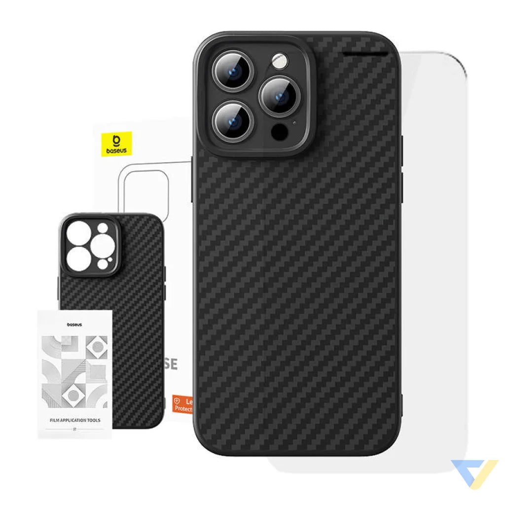 Case Baseus Synthetic Fiber iPhone 15 Pro + tempered glass