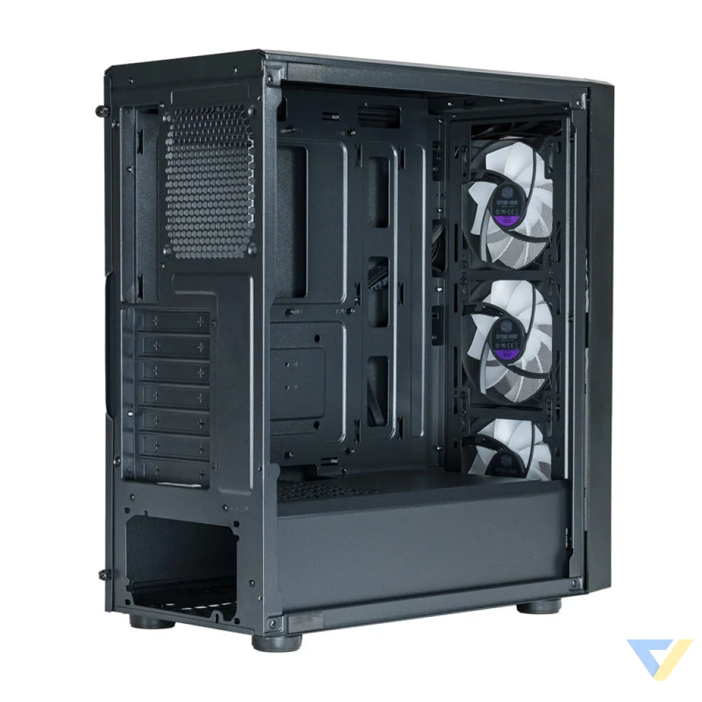 Three CF120 ARGB fans have been installed on the front of the case to provide excellent airflow and give the interior a gaming feel. The case is also equipped with a built-in ARGB hub, which makes it easy to manage cables inside and allows you to synchronize the backlighting through the motherboard.