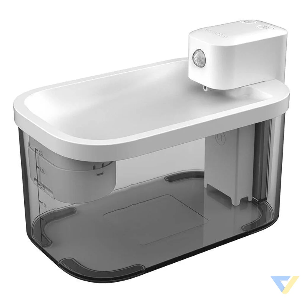 Thanks to the motion sensor, operating in Sensor mode, the fountain starts the flow of water for one minute after detecting the presence of a pet within a 120° radius. A practical button allows you to conveniently switch between operating modes (Sensor or Timing with 2 time intervals) - you decide whether you want the water flow to start every 15 minutes or every 2 hours.