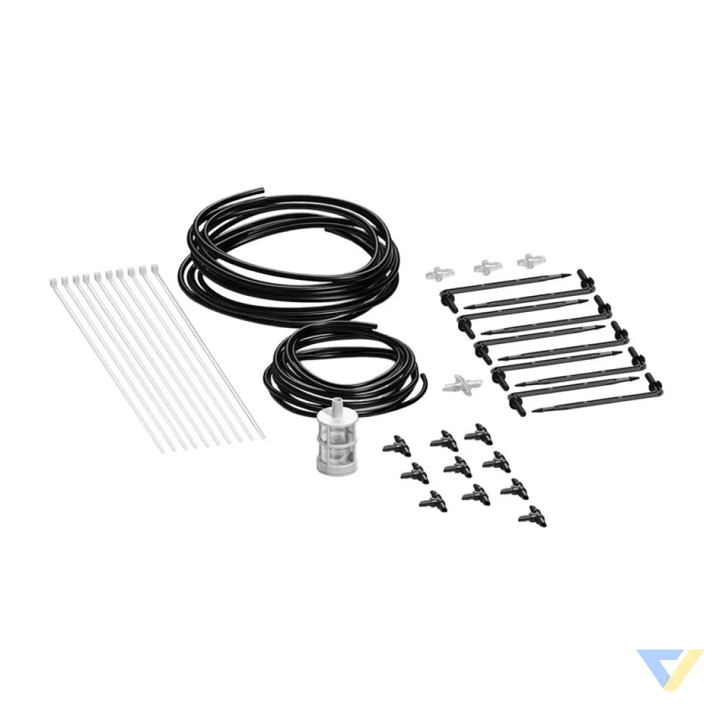 Complete your RainPoint irrigation kit with a set of accessories that will allow you to water even more plants accurately and efficiently. The kit includes flexible hoses of various diameters, mounting spikes, drip emitters, T- and cross connectors, and a filter to protect against debris. With these components, you can easily expand your irrigation system to fit the layout of flowerbeds, pots and beds in your garden. This solution is ideal when a standard set is sufficient for 10-15 plants, and you need to cover a larger area with irrigation.
