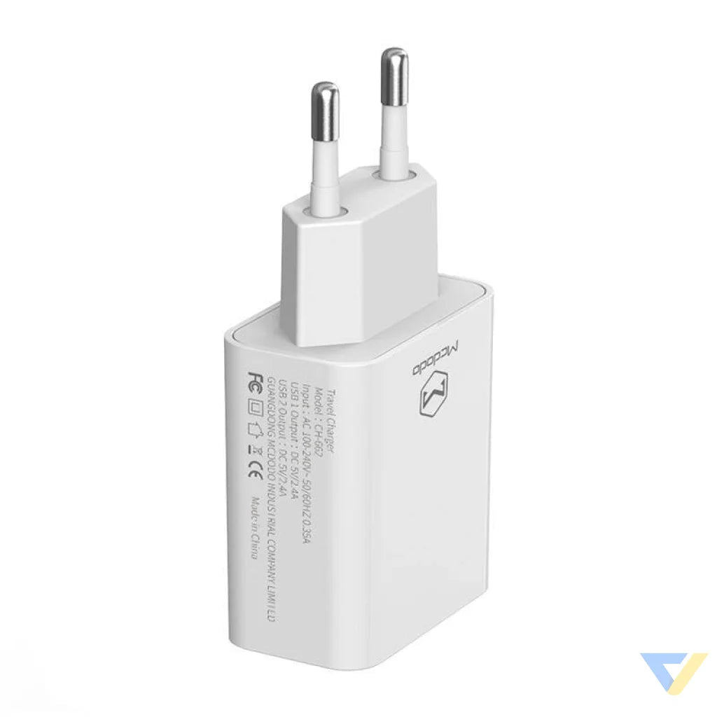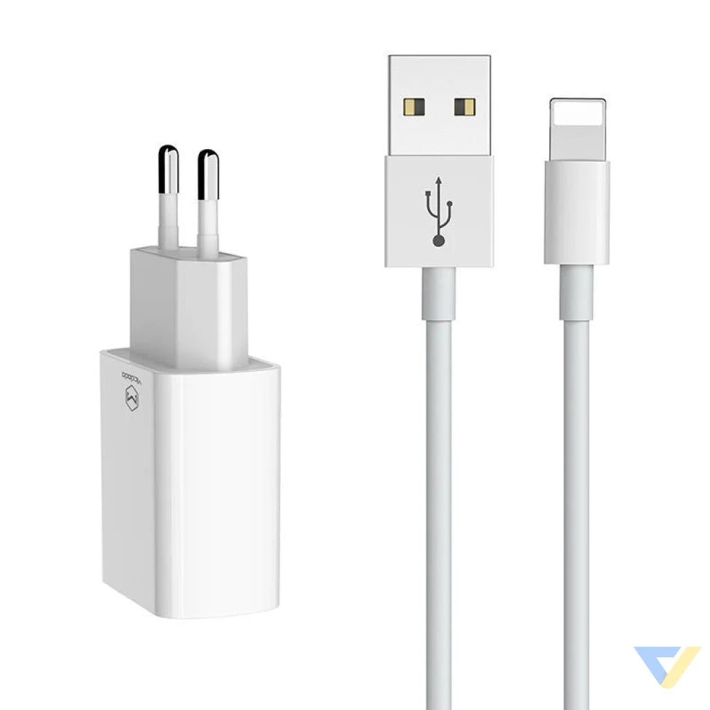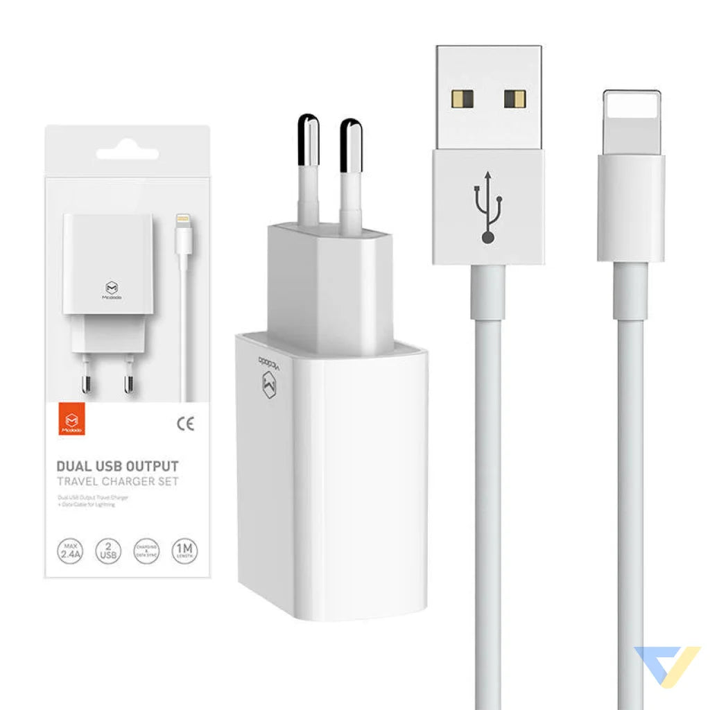Mcdodo CH-6720 Dual USB Charger (EU) Lightning 1m Travel set (white).