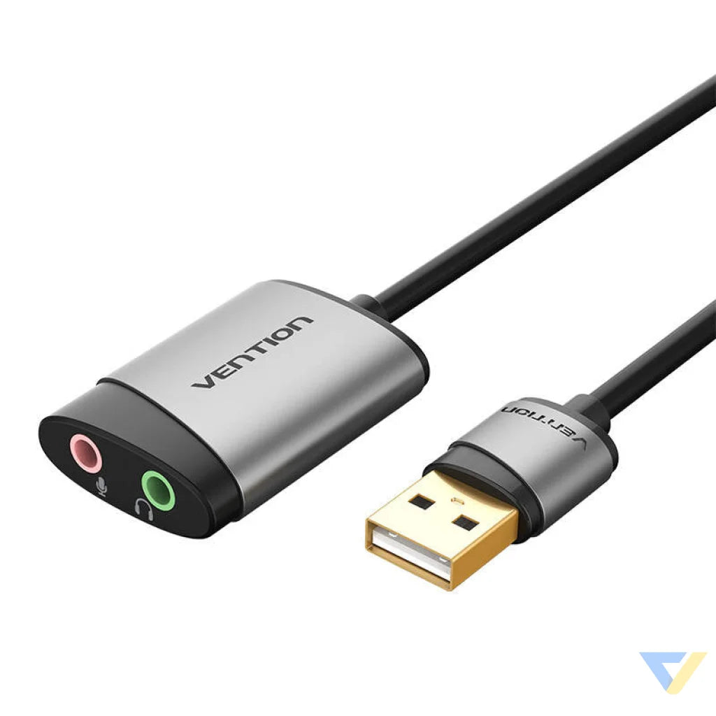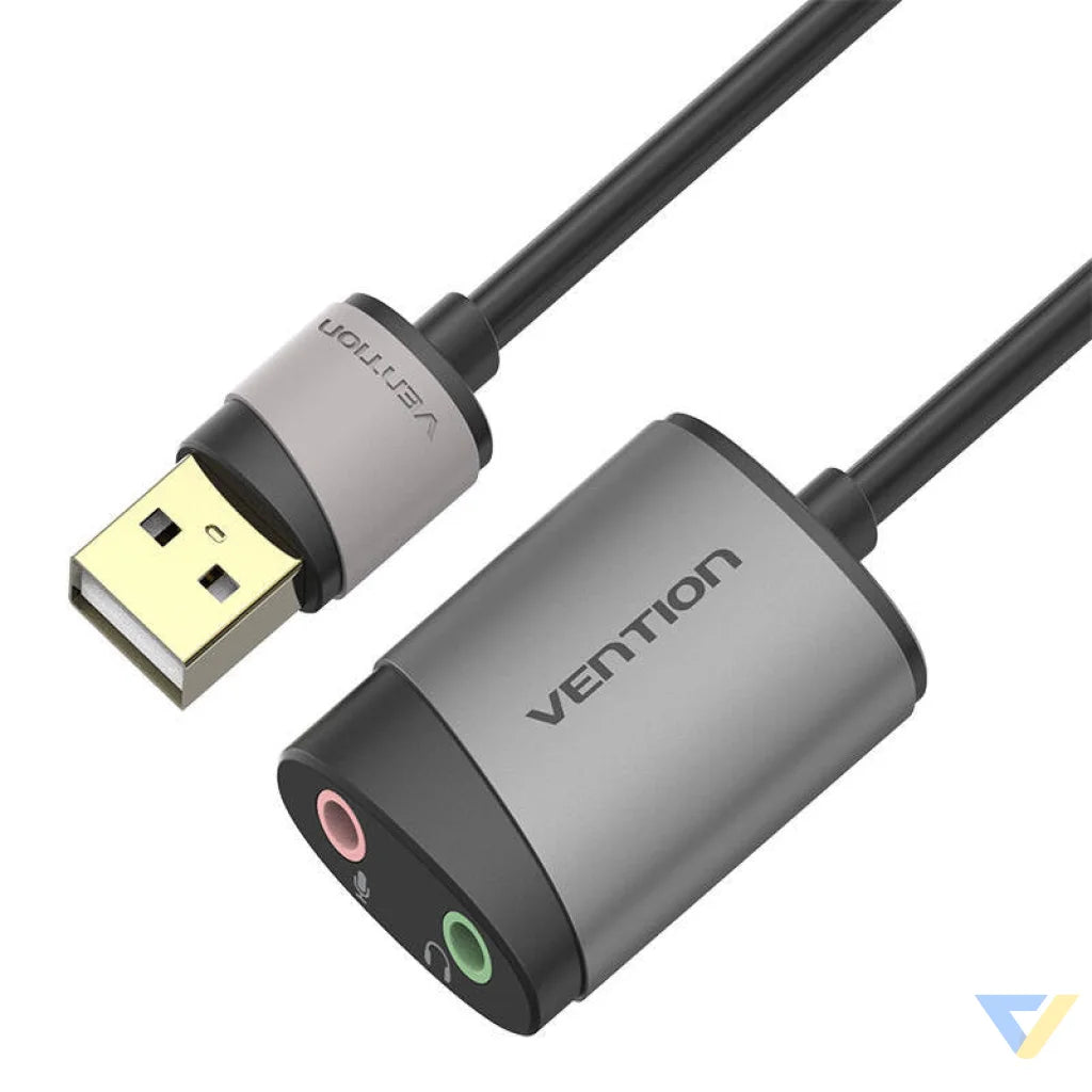 The 0.15-meter cable length and compact size of the Vention sound card make it easy to carry and space-saving. The gray metal finish adds elegance and ensures the durability of the device.