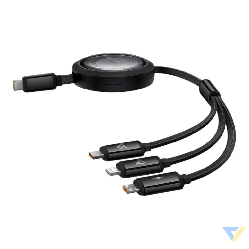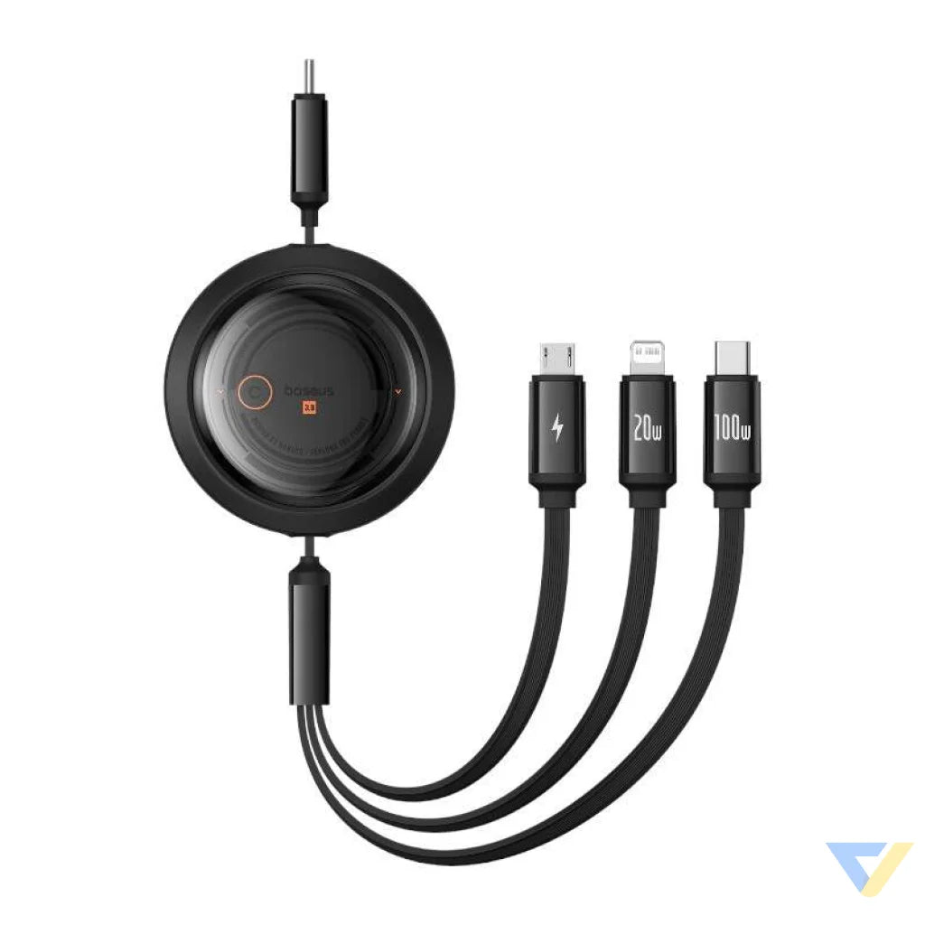 With the Baseus Free2Draw 3-in-1 cable, charging and data transfer becomes fast, convenient and hassle-free. With the ability to charge as many as three devices simultaneously, it is an indispensable companion for travel, work or home. It provides maximum power of up to 100 watts, and its clever design allows 4-stage length adjustment.