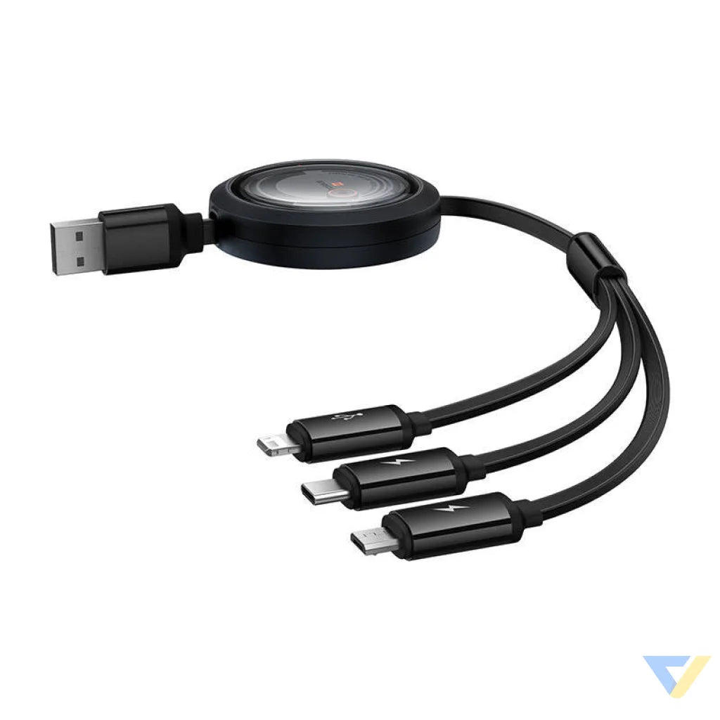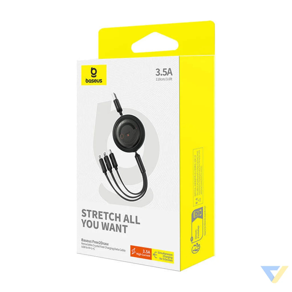 Free2Draw Retractable Crystal Fast Charging Data Cable USB to M+L+C 3.5A |