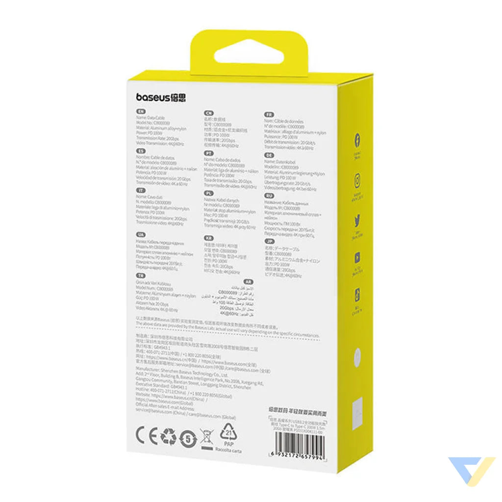Discover a new standard of performance and reliability! The Baseus Crystal Shine cable offers charging with up to 100 watts of power, and data transfer speeds of up to 20Gbps ensure lightning-fast file transfers, no matter the size. It also supports 4K@60Hz video transmissions, allowing for smooth video viewing on compatible devices. Made of premium materials such as aluminum alloy and nylon braid, it is not only durable, but also resistant to bending and mechanical damage.