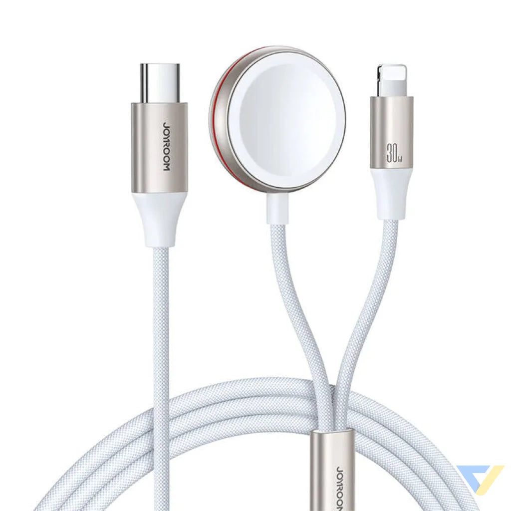 Now you can charge your iPhone and Apple Watch at the same time. The Joyroom S-IW012 cable is equipped with a Lightning connector and a magnetic charger for your smartwatch, and thanks to its high power, it allows you to quickly charge both devices. The product is also highly durable and stands out for its wide compatibility. With it, you can easily charge various models of iPhones, Apple Watches, iPads, and AirPods.