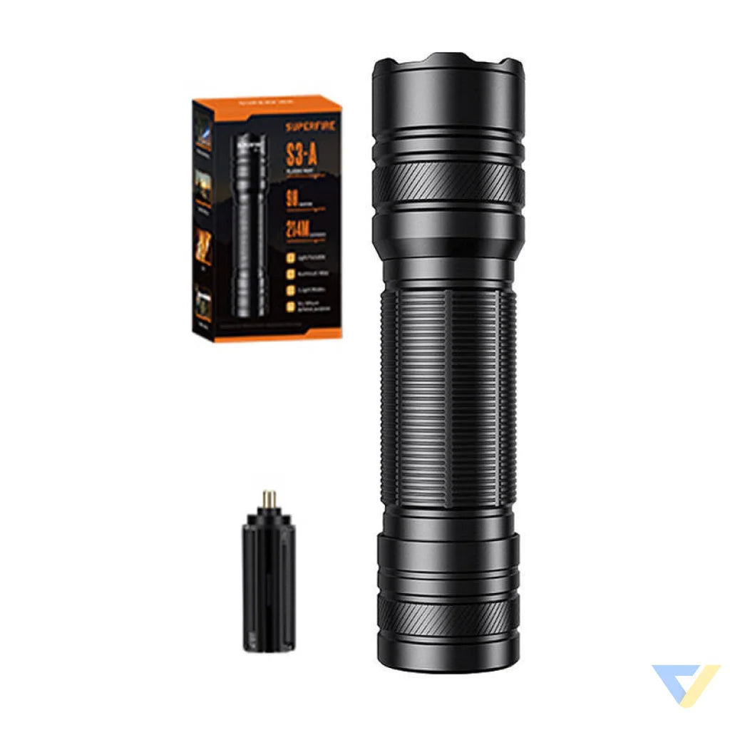 The Superfire S3-A offers up to five light modes - Strong Light, Medium Light, Low Light, Strobe, and an SOS mode that can save lives in emergency situations. This versatility makes the flashlight ideal for a variety of lighting conditions, allowing you to fine-tune the light intensity to suit your current needs. Whether you need a bright light for searching the terrain or a softer light for reading a map, the Superfire S3-A provides the right mode for every occasion.