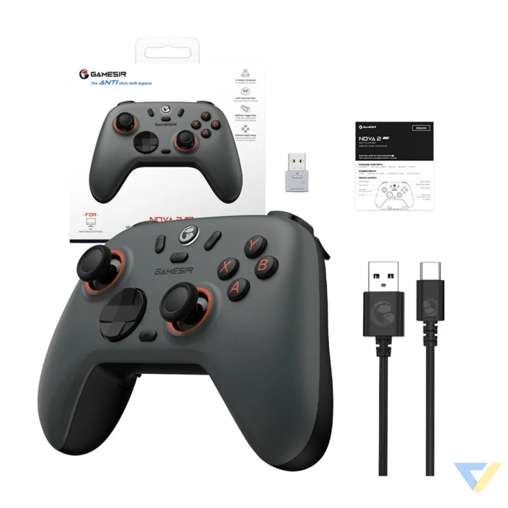 Meet the GameSir Nova 2 Lite - a controller created for Switch consoles, desktops, and Android and iOS devices, offering up to three methods of connectivity (Bluetooth, USB-C cable, 2.4 GHz), low latency, and 1,000 Hz of debugging with wired and wireless connections. Equipped with Hall-sensor sticks and faders, it provides smooth operation, while a mechanical circular D-pad created in collaboration with XiaoHai guarantees precise directional responses. Two trigger stages and a "hair trigger" mode let you adjust the responsiveness to your playing style, while two asymmetrical vibration motors intelligently respond to what's happening in the game. Two back buttons allow you to map functions and record macros, and a 600 mAh charging station simplifies use. The whole thing can be configured and updated via the GameSir Connect app for PC and GameSir app for smartphone to adjust blind spots, vibration and other settings.