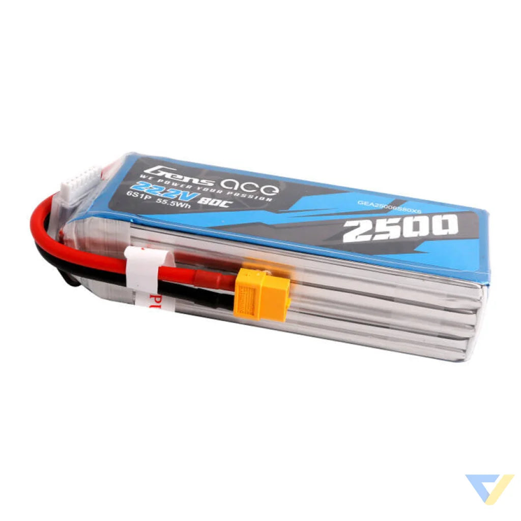 Gens ace 2500mAh 22.2V 80C 6S1P Lipo battery with XT60 plug connector. The Gens ace 2500mAh 22.2V 80C 6S1P Lipo...