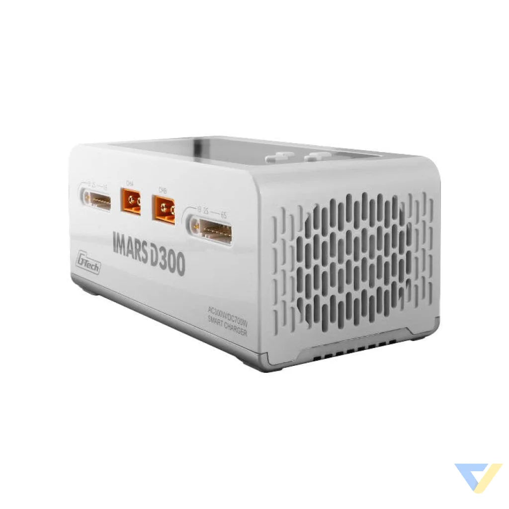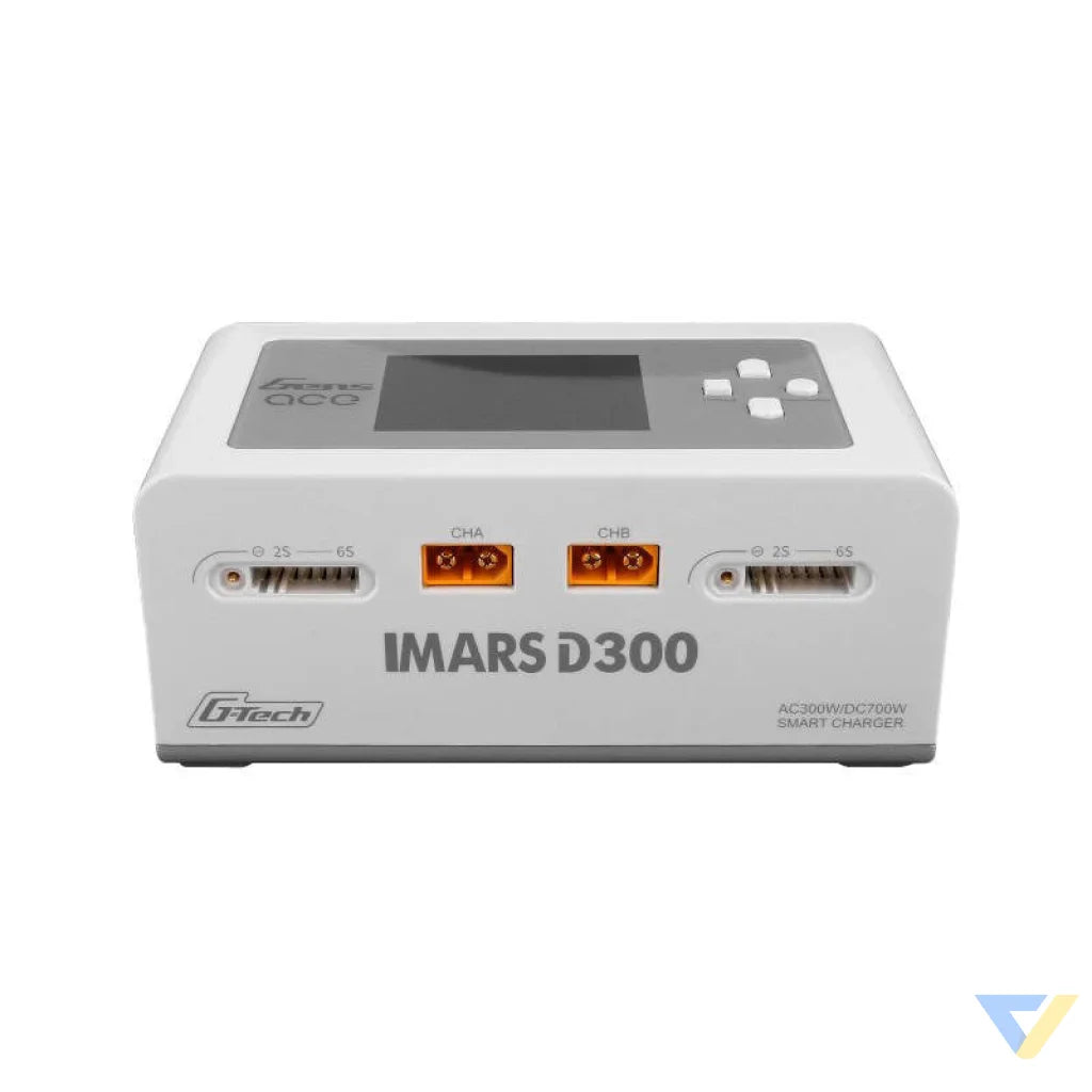 IMARS D300 is a versatile and smart charger designed for G-Tech Eco smart batteries. It is also compatible with other batteries. It automatically identifies G-Tech battery type, voltage and charging current, making the process easier. It has seven operating modes, including charging, discharging, balancing and more. With dual-channel AC/DC charging portable design and large IPS display, it is easy to use and operate. It offers high charging power, advanced safety features and G-Tech smart charging support.
