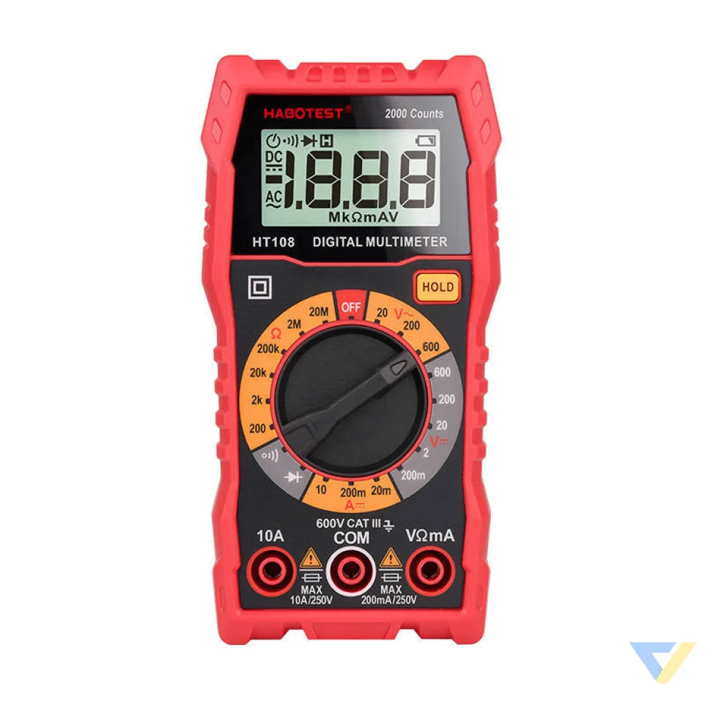 Habotest HT108L digital multimeter is a multifunctional device that will prove useful during electrical work. The product allows you to measure voltage, resistance and many other values. The multimeter has an easy-to-read display that allows you to conveniently read the measurement results, moreover, it is equipped with a flashlight and practical buttons.