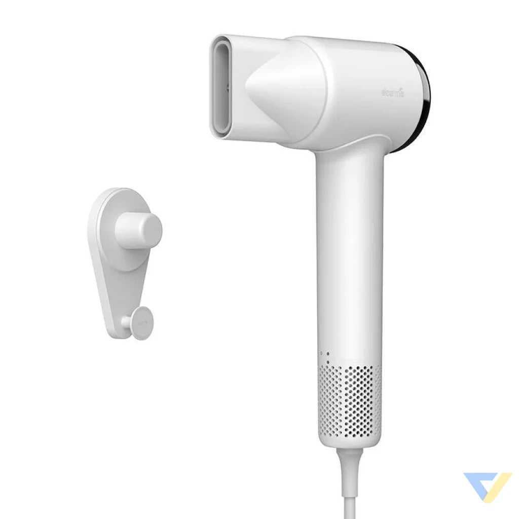 The Deerma gadget has been designed with the utmost comfort in mind. Its light weight of just 390 g and compact dimensions of 250 × 97 × 70 mm make it extremely handy and easy to use. In addition, thanks to advanced noise reduction, the unit's operating volume is only 56 dB, which guarantees quiet and peaceful operation. What's more, the double-layer filter effectively prevents dust and hair from entering the dryer. You'll also find a magnetic nozzle that can rotate 360°, allowing you to precisely direct the airflow and better control the drying process.