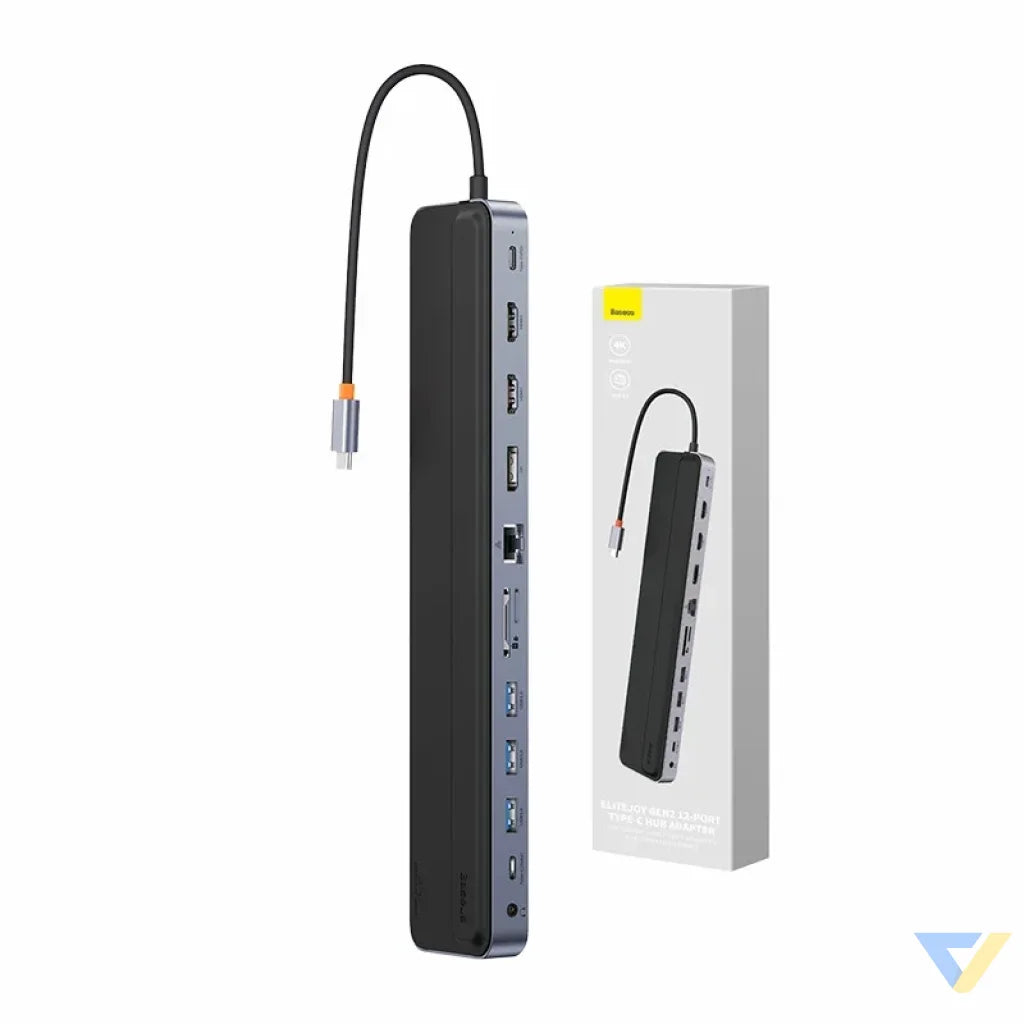 Hub 12in1 Baseus EliteJoy Gen2 series USB-C to 2xHDMI+ 3xUSB 3.0+ PD+ DP+ SD/TF+ RJ45+Type-C+ 3.5mm (dark gray)