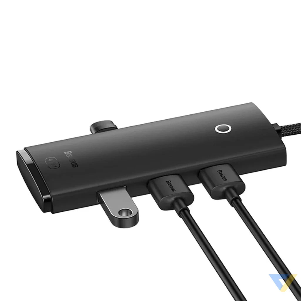 Increase your efficiency with the Baseus hub and get up to 4 USB 3.0 ports. The product is compatible with flash drives, hard drives, mice, keyboards, card readers, laptops, computers, printers, tablets, heaters, fans and desktops. The possibilities are indeed many!
