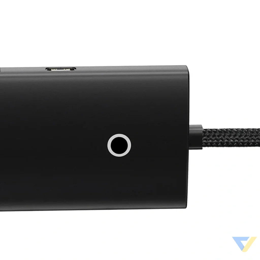 The Baseus hub is made of durable ABS plastic, which is resistant to fingerprints and scratches, ensuring durability. The solid casing protects it from damage. The product also features a compact design, making it ideal for business travel. It is equipped with an indicator light that indicates whether it is turned on and working properly.