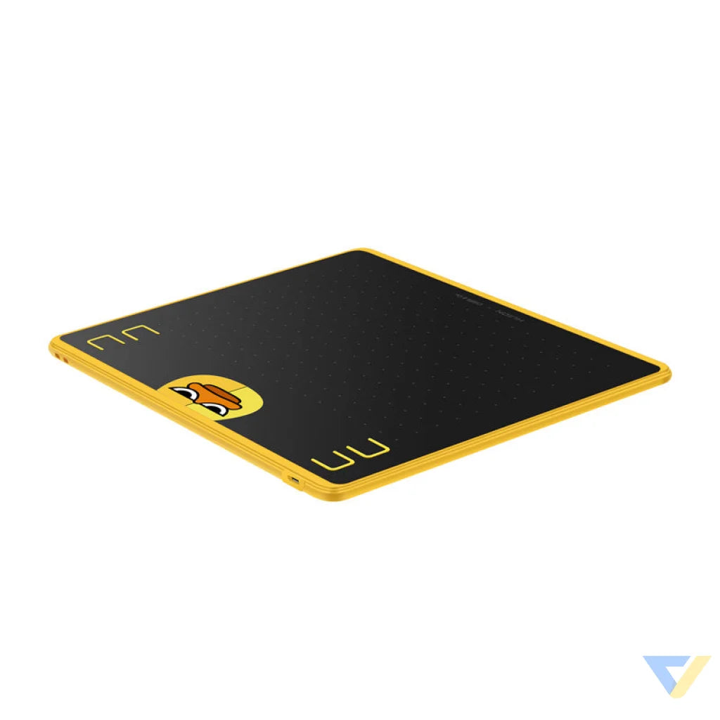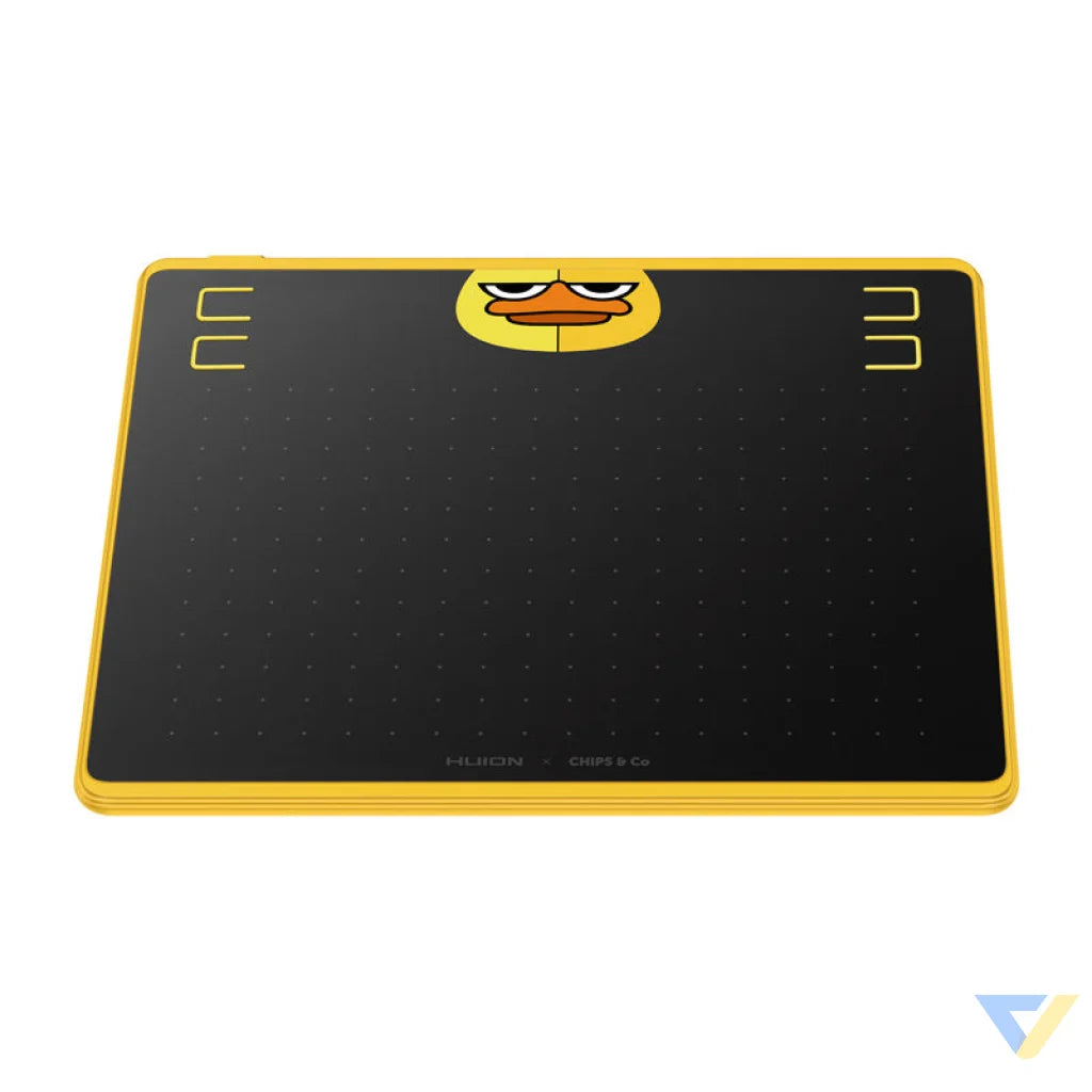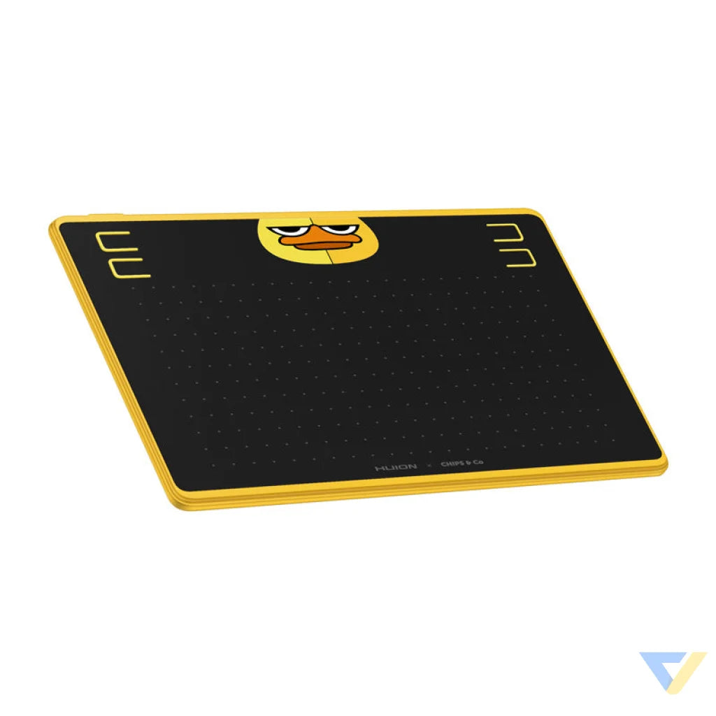 The Huion HS64 SE tablet catches the eye with a fun, charming design featuring an image of a cartoon duck and delicate star accents on the surface. With a slim design that is only 8 mm thick, the device can easily fit into a backpack or bag, making it an ideal choice for mobile workers or frequent travelers.