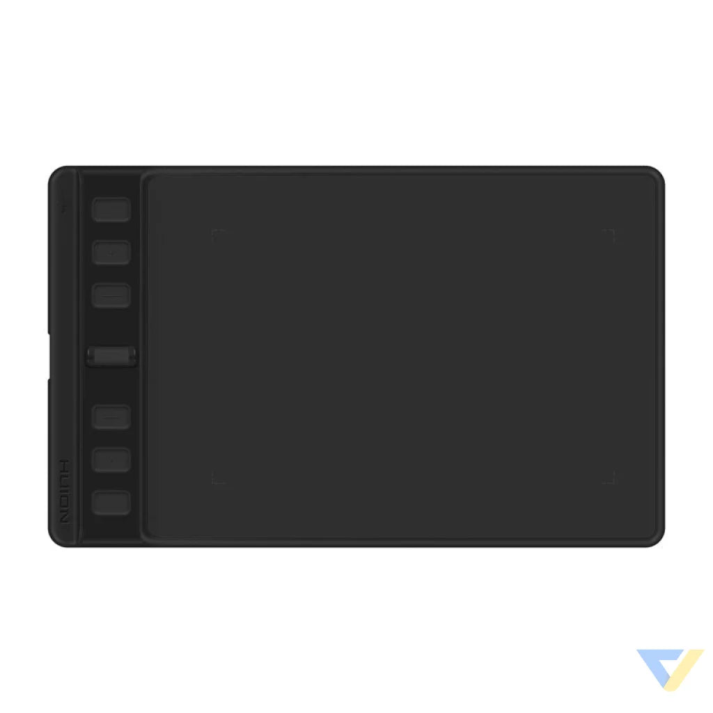 HUION has made sure that the tablet is convenient for everyone. The USB-C port is placed on the left side, and the layout of the buttons and slider is symmetrical. So you can easily rotate the device 180° and adjust it to your dominant hand in the settings. It also supports 90° rotation, which will be appreciated by those who use monitors in portrait orientation.