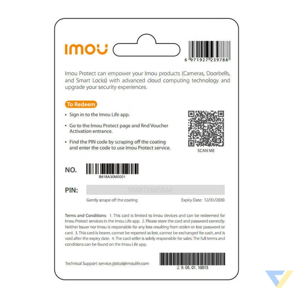 With the card, you gain a one-year support subscription for your IMOU products. As part of it, you get advanced cloud computing technology as well as enhanced security. Choose IMOU Protect and enjoy even more convenience. Note: Subscription is for single camera only, not applicable to DUAL cameras.