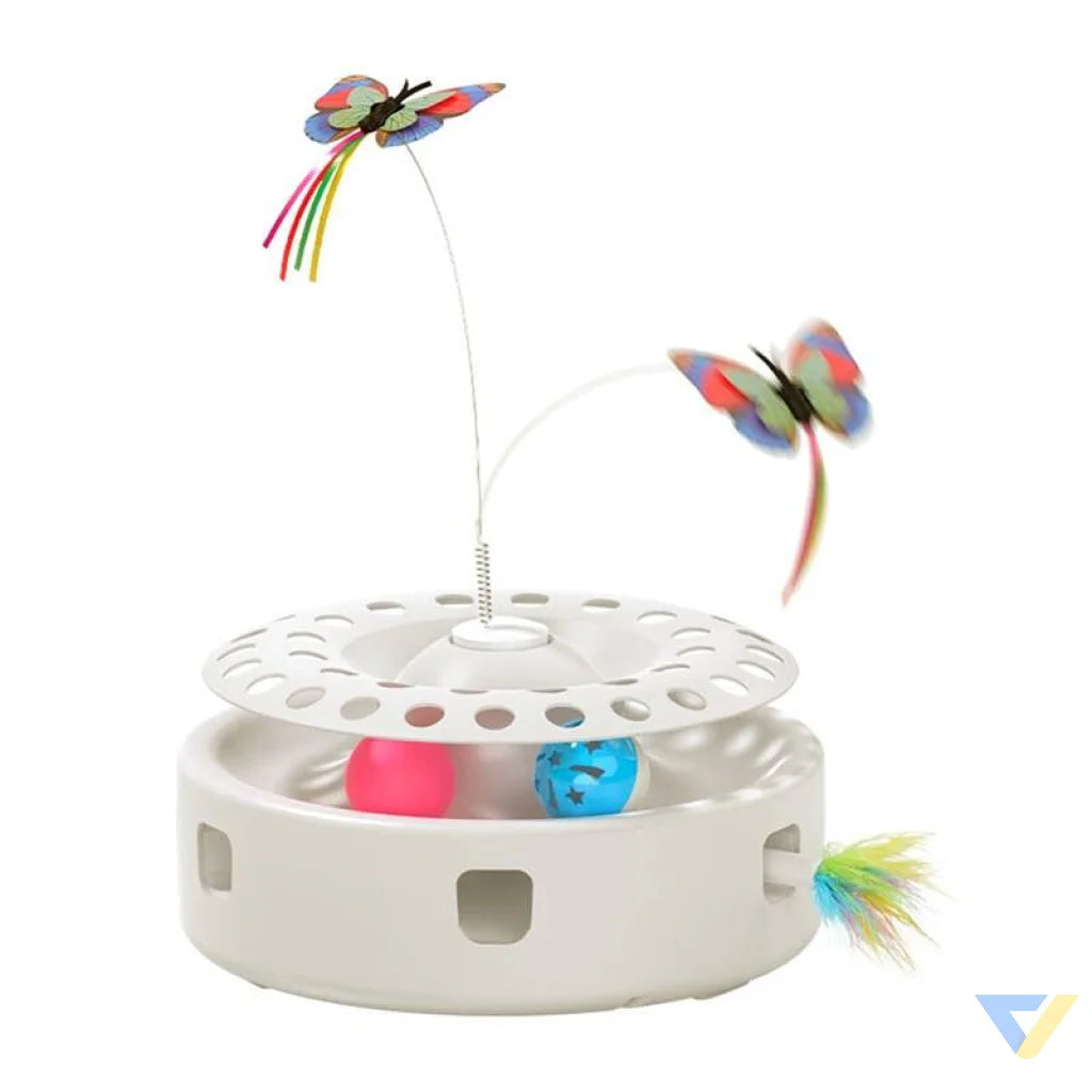 Rojeco's toy combines three elements - a spinning butterfly, a popping feather and balls that move along a track. The butterfly moves erratically, which engages the cat's attention and stimulates its hunting instinct. The randomly popping feather, on the other hand, attracts attention and surprises, making cats eager to try to catch it. The last element is the balls, which roll along a smooth track, providing long-lasting and safe entertainment.