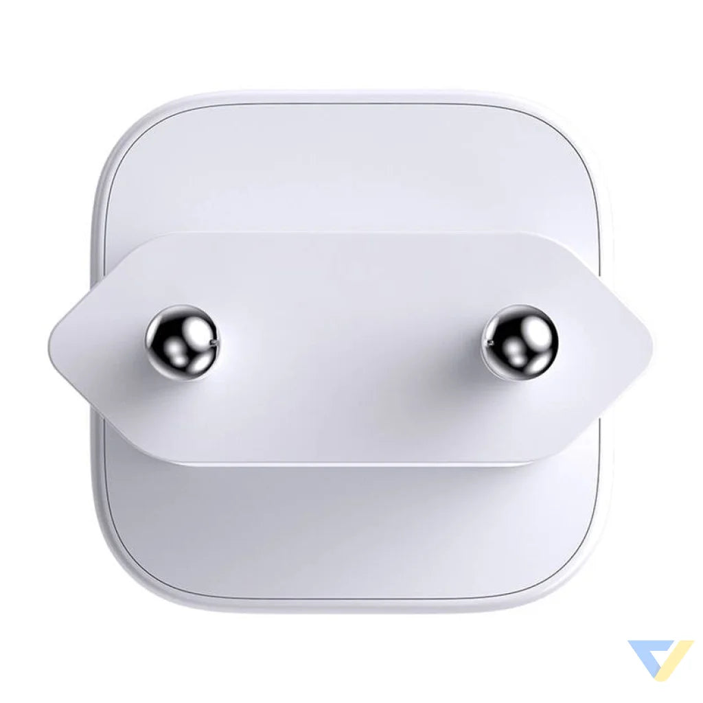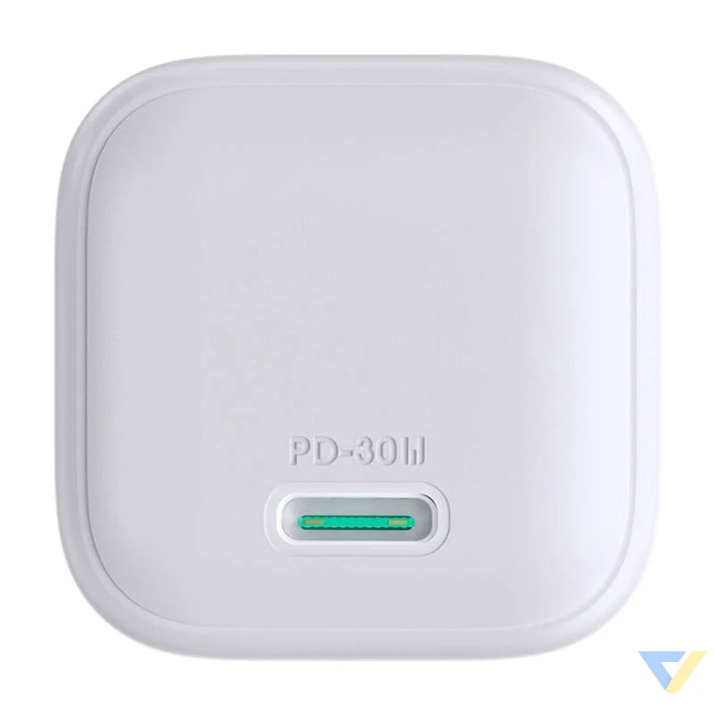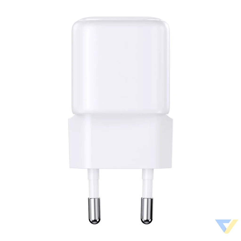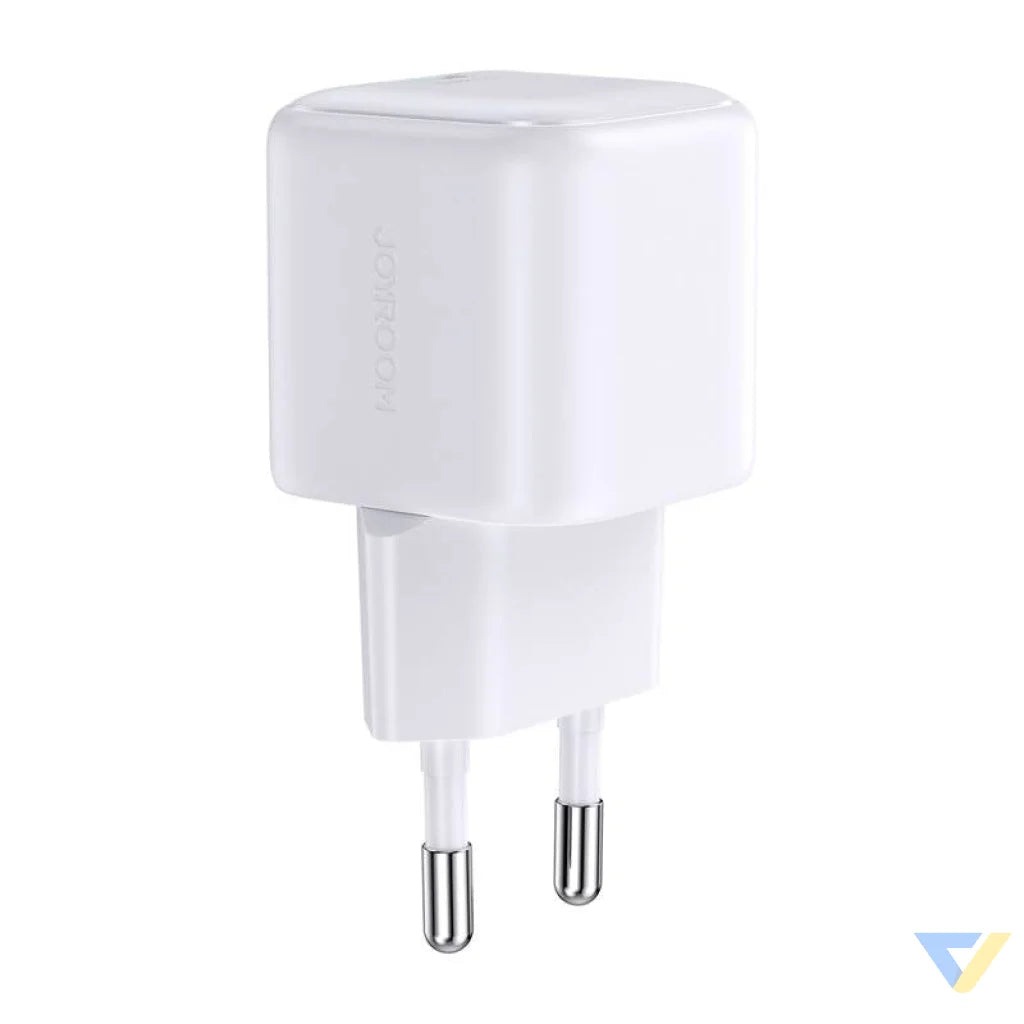 The Joyroom JR-TCG15's design is 60% smaller compared to standard chargers. Its dimensions are just 32.5 x 32.5 x 68 mm, and it weighs less than 50 g.