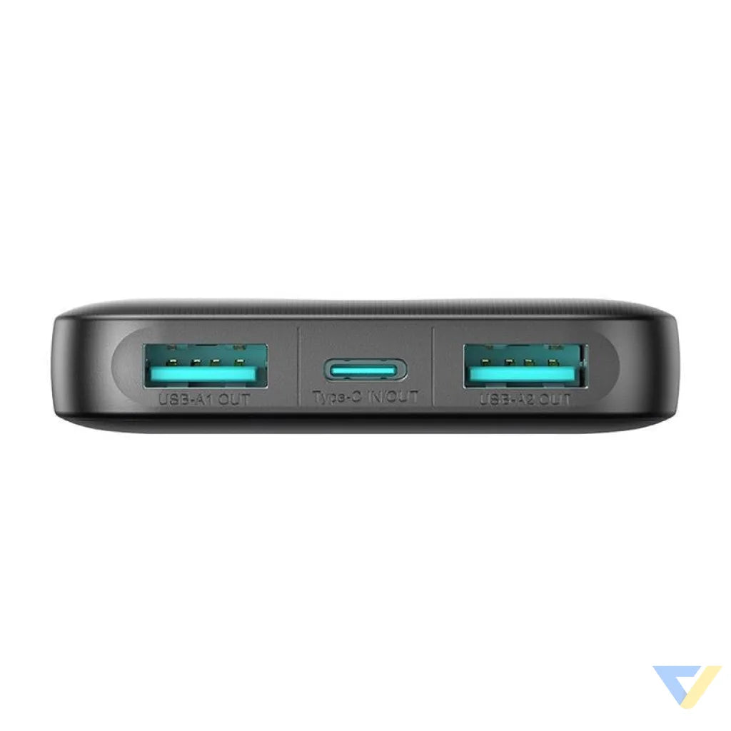 The Joyroom JR-PBF13 powerbank features three output ports so you can charge multiple devices simultaneously. The USB-A1 and USB-A2 ports offer 12W charging speeds, while the Type-C port supports both input and output with 12W power. So you can easily charge your phone, tablet, headphones or other mobile device without worrying about the lack of available ports.