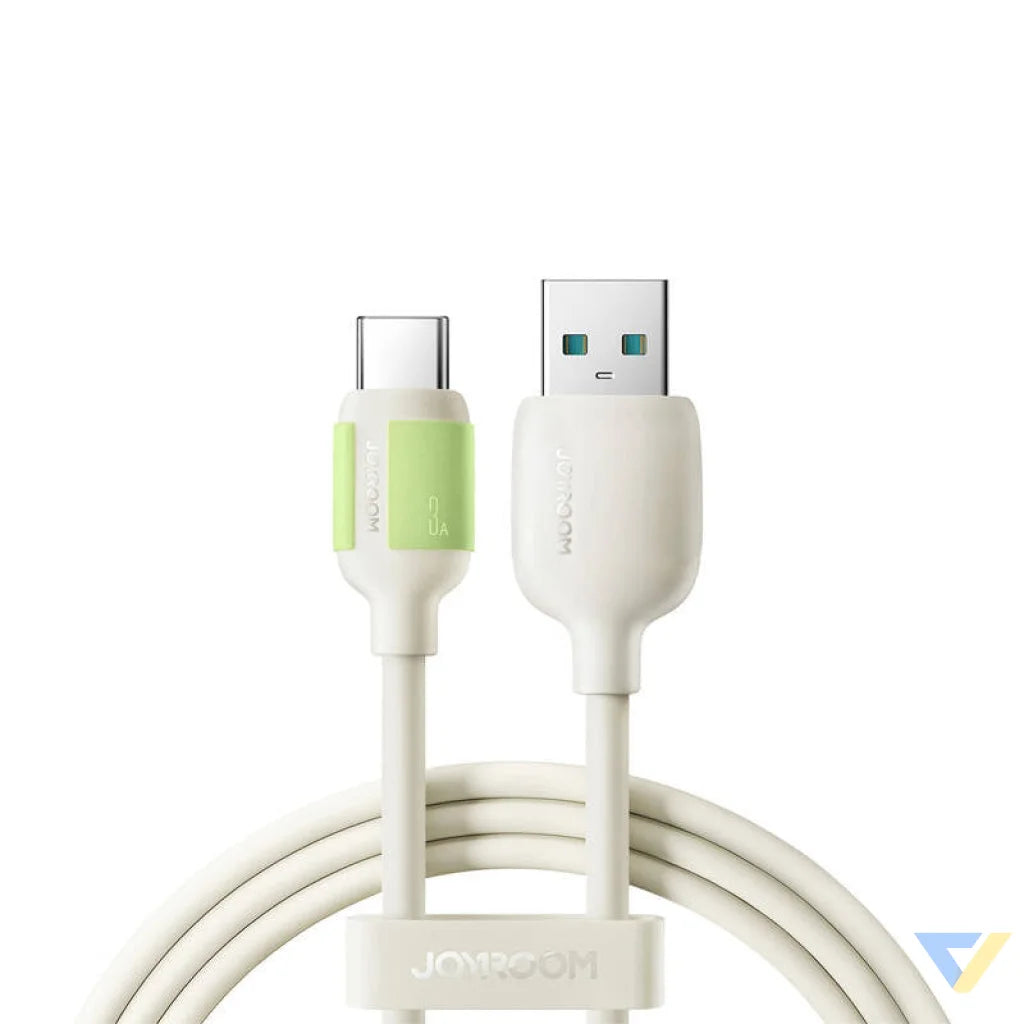 Looking for a reliable cable that provides fast charging and allows data transmission? The Joyroom S-A53 offers 3A and 30W of power, and thanks to a thicker tinned copper core, it reduces resistance for faster power transfer. It's made of liquid silicone and TPE, so it's extremely flexible, pleasant to the touch and resistant to tangling no. Its design also includes glow-in-the-dark components.