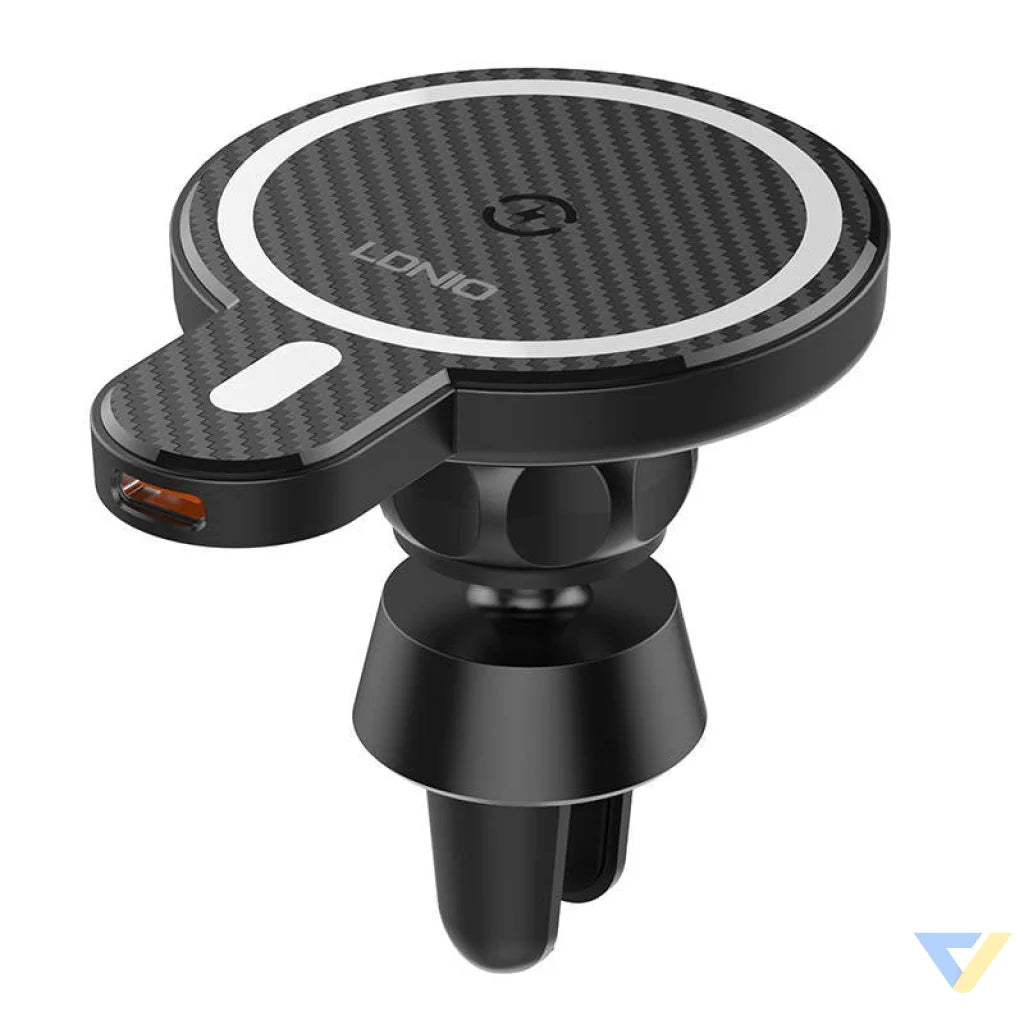 Take care of your comfort while traveling by car. LDNIO offers not only a sturdy car mount, but also a functional inductive charger with an impressive 15W power output. Whether you are planning a long trip or a spontaneous journey, the MA20 model will meet your needs. Mounting the gadget on the ventilation grille will not cause you any trouble, and strong magnets will stably hold your device. The product is compatible with all smartphones and is equipped with a USB-C port. Also noteworthy is its 360° rotation capability and immunity to interference. A metal ring is included in the set.