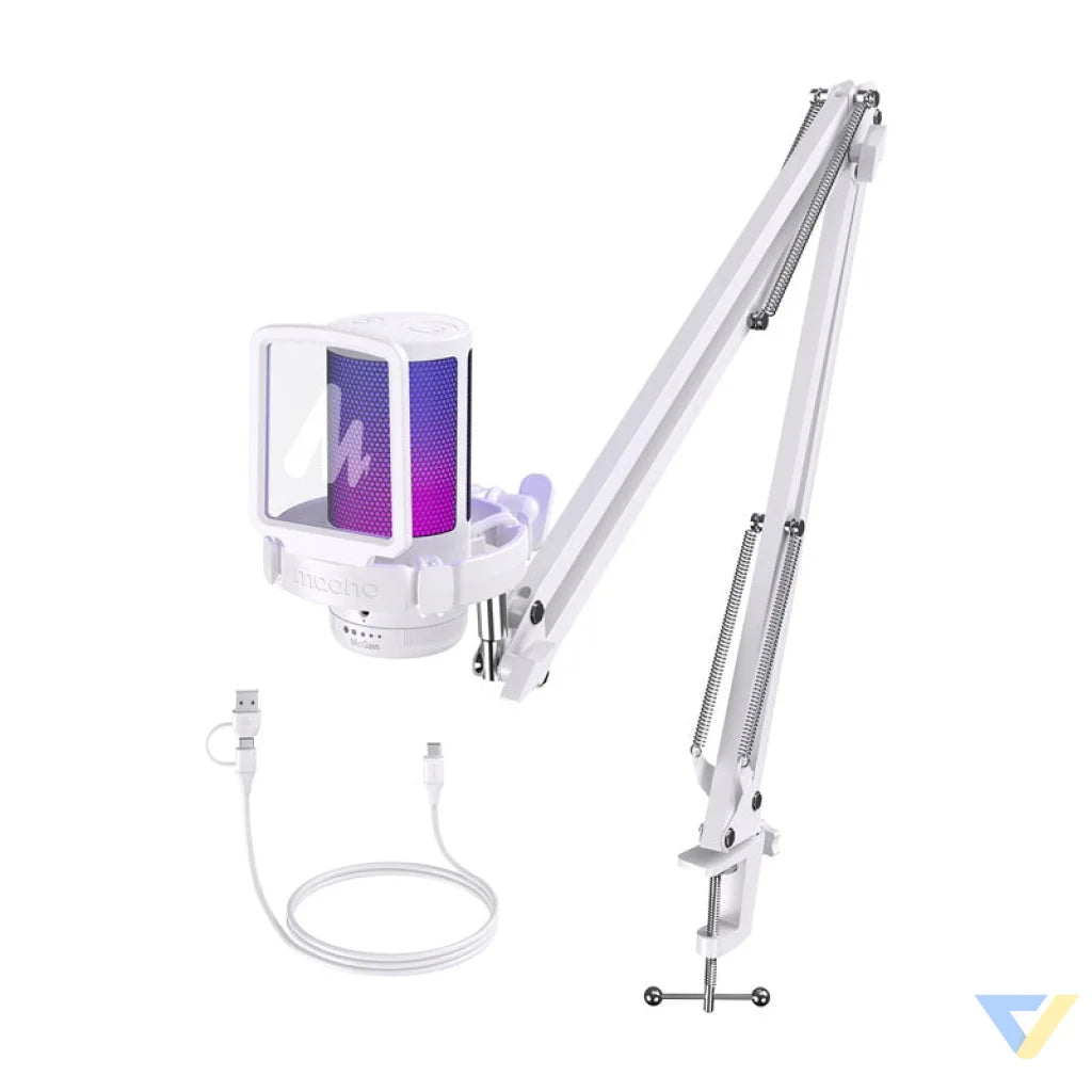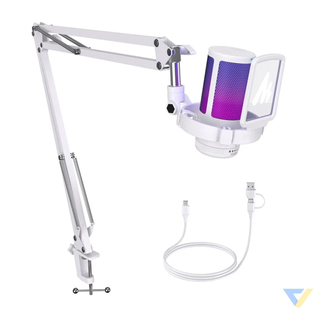 The Maono DGM20S is a USB condenser microphone designed for gamers, streamers and creators who want to achieve clear and clean sound without a complicated setup. It offers active noise cancellation, adjustable microphone sensitivity, RGB backlighting with three modes and one-button quick mute. The microphone is compatible with Windows, macOS and PlayStation 4 and 5 consoles. Note: the product does not work with Xbox. It comes with a sturdy, adjustable arm that allows you to position the device comfortably on your desk.