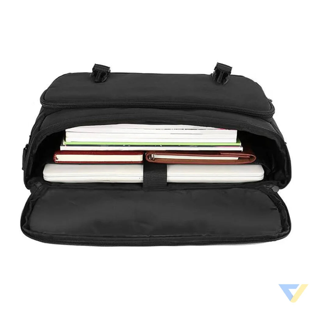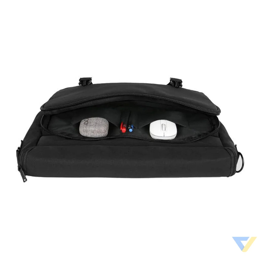The bag has numerous pockets that make it easy to store essential accessories. The front pocket with an organizer allows quick access to pens, mouse, notebook or power banks. Spacious main compartments allow you to safely store your laptop and documents, so everything you need is always at your fingertips.