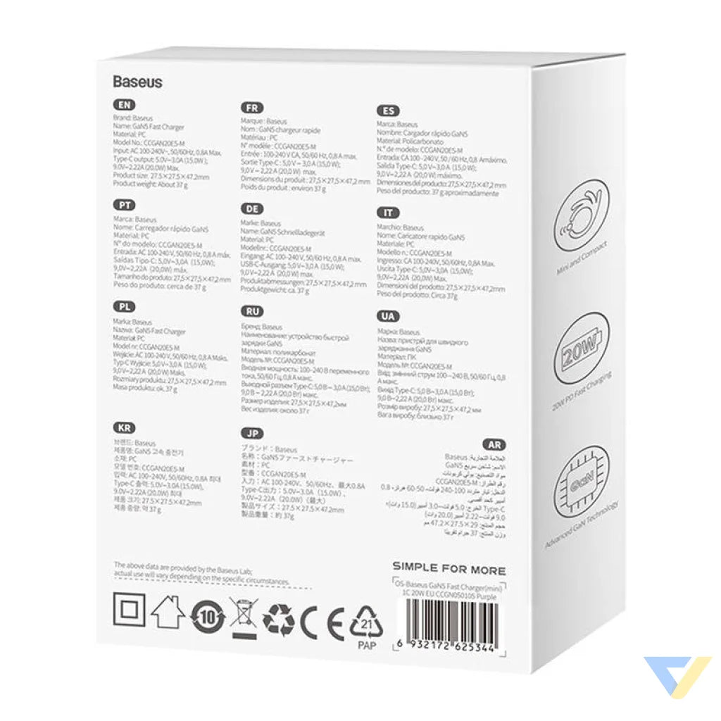 Baseus GaN5 20W mini mains charger (purple)