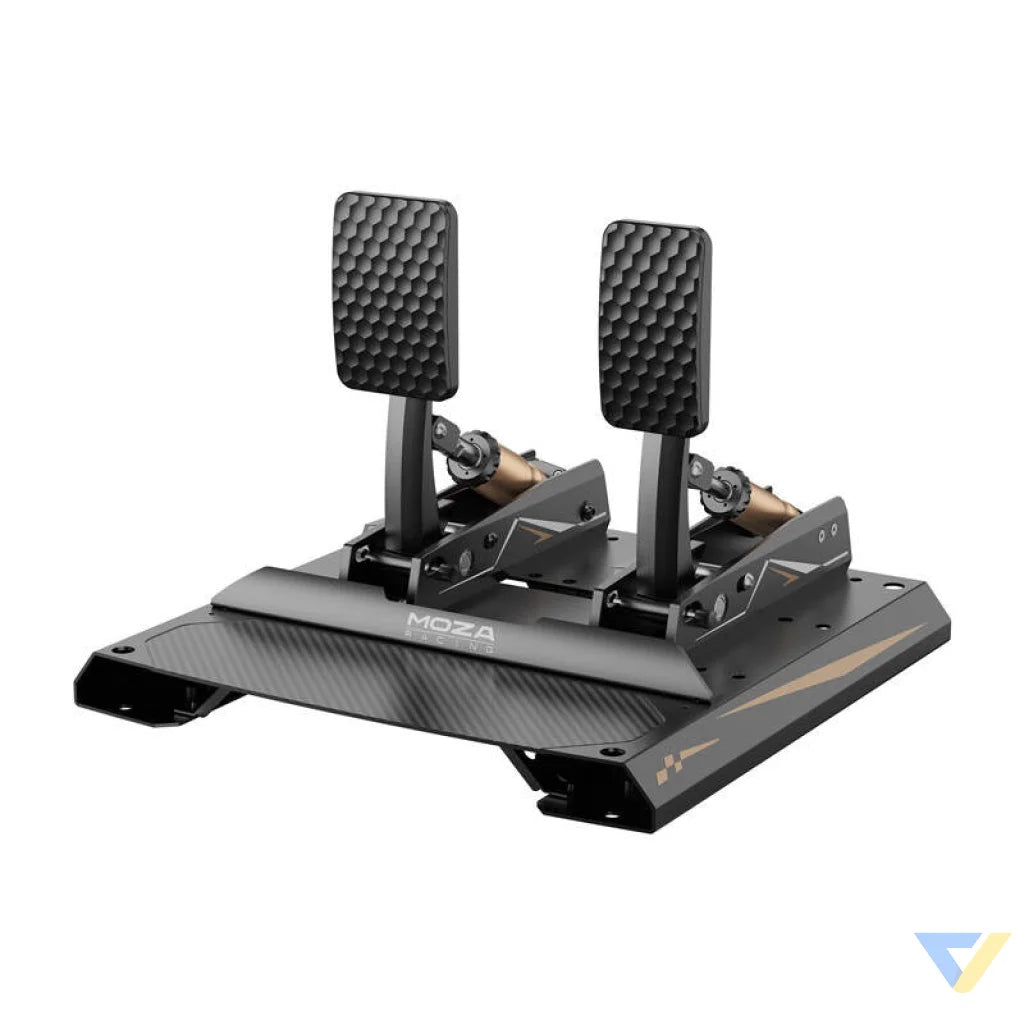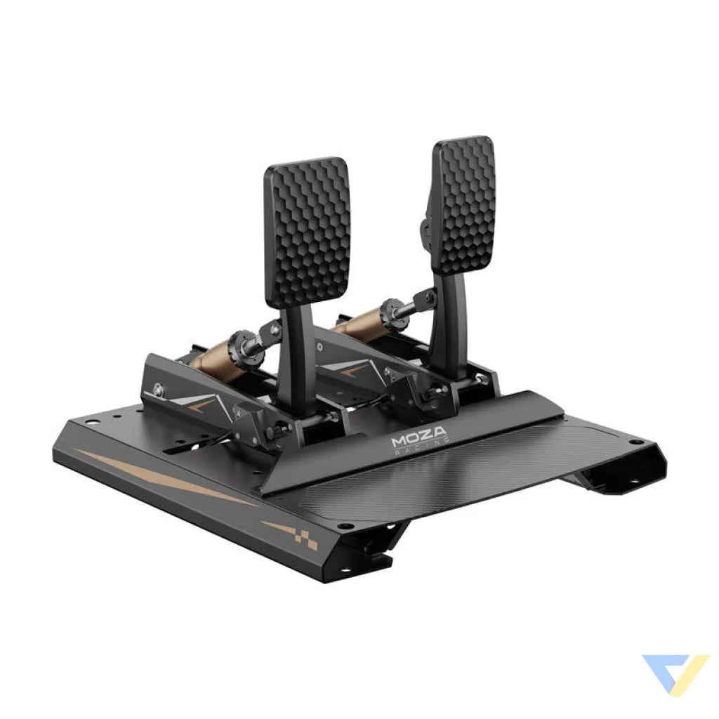 The Moza CRP2 Load Cell RS066 pedal set is ideal for Xbox and PC racing simulation enthusiasts. With its minimalist design, sleek black and gold color scheme, and sturdy construction, this set not only looks impressive, but also delivers unparalleled driving precision. Unique details such as hidden wiring and springs, and the hexagonal pattern on the surface of the pedals symbolize perfect balance and versatility.